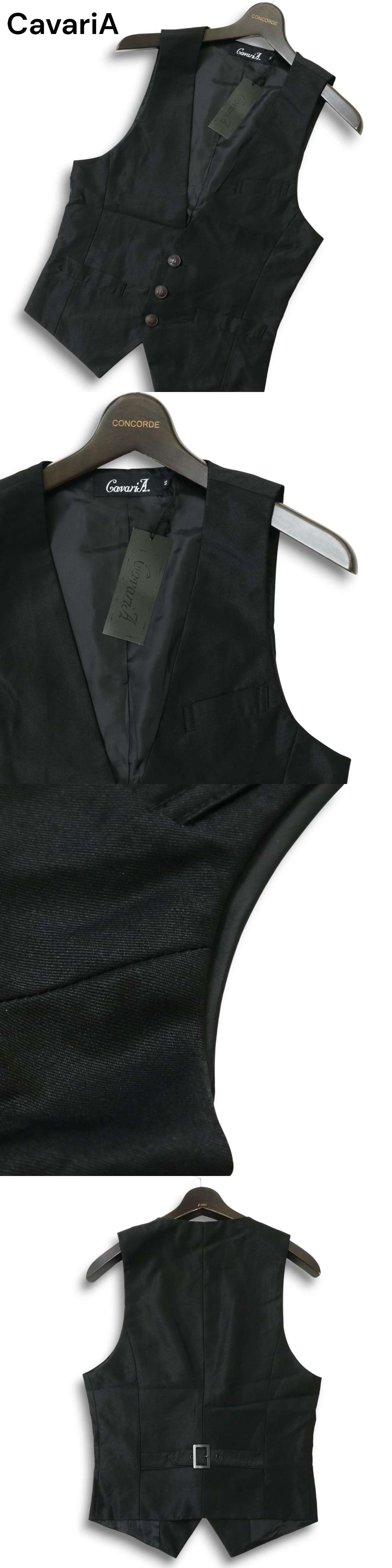 【新品 未使用】 CavariA キャバリア 通年★ テーラード ジレ フォーマル ベスト Sz.44 メンズ 黒 收藏