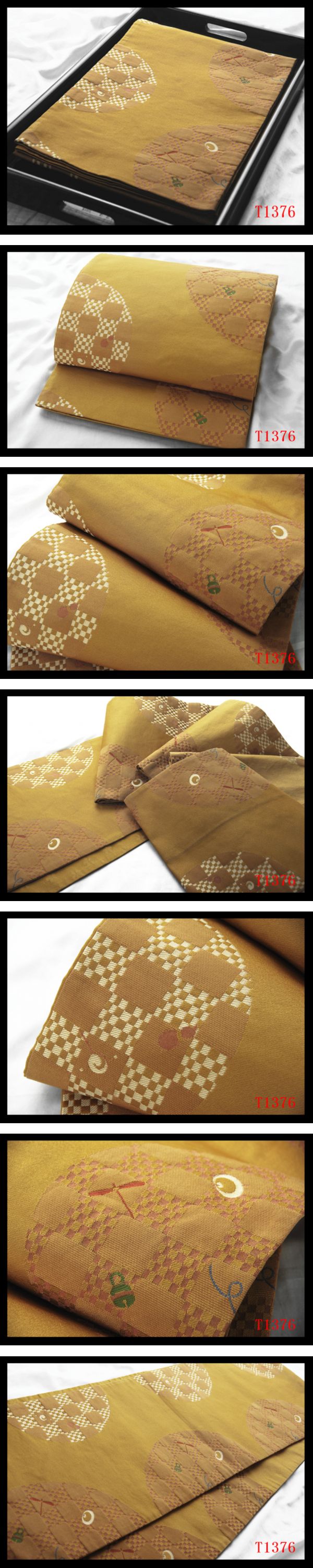蔵【T1376】厳選美品 市松紋 芥子色地 気品豊かに 六通高級美術京袋帯 ◇検◇簪着物袋帯和装小物帯締め 收藏