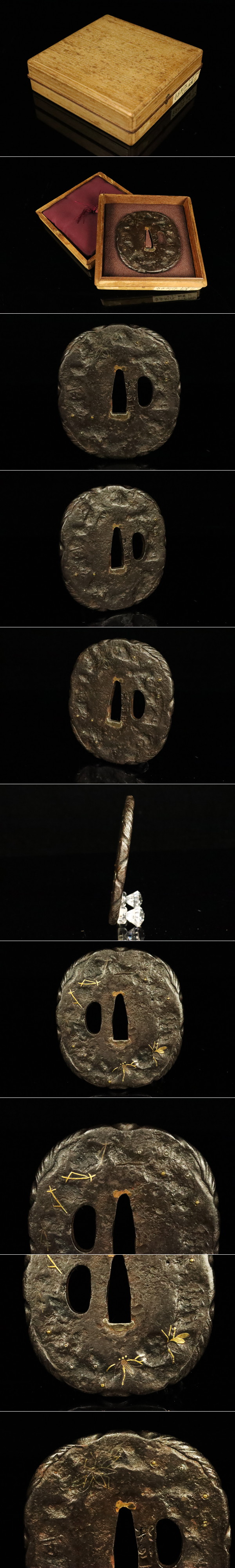 【ASAHI】時代武具 刀装具 珍品!逆さ銘:正阿弥 鉄地象嵌金象嵌鍔 鉄鍔 8cm 大型 日本刀 小道具[712191qw] 收藏