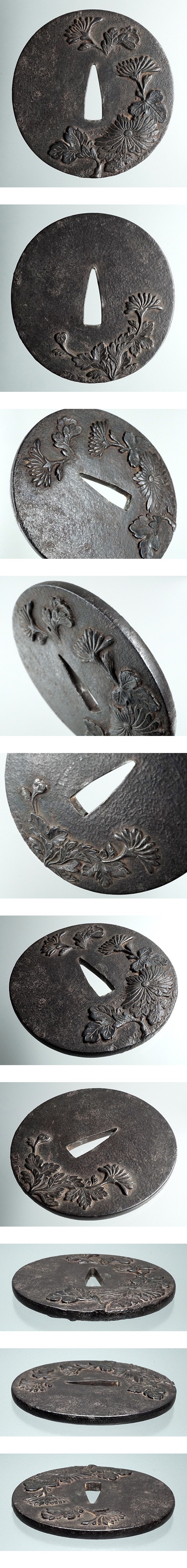 無銘 無櫃孔 85mm大鐔「菊枝花図」