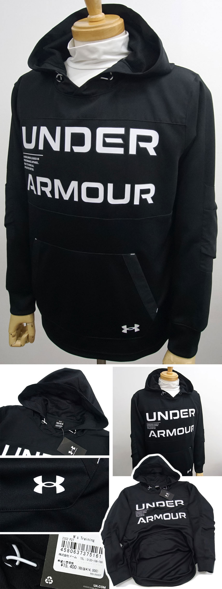 国内正規品です(アンダーアーマー日本総代理店 株式会社ドーム/MADE IN VIETNAM)。ありえませんが、万が一、偽物と判断されるようならば全額、返金させていただきますので、安心してご入札ください。(インナーのモックネックは撮影時のイメージでジャケットのみの出品です。)