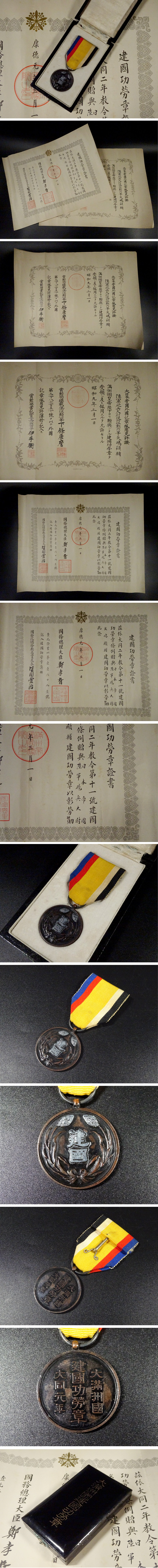∇花∇希少 満州国勲章 大同元年 大満州国建国功労章 勲章 貴重な 勲記 大日本帝国外国記章佩用免許證 元箱付き 旧日本軍 21 收藏