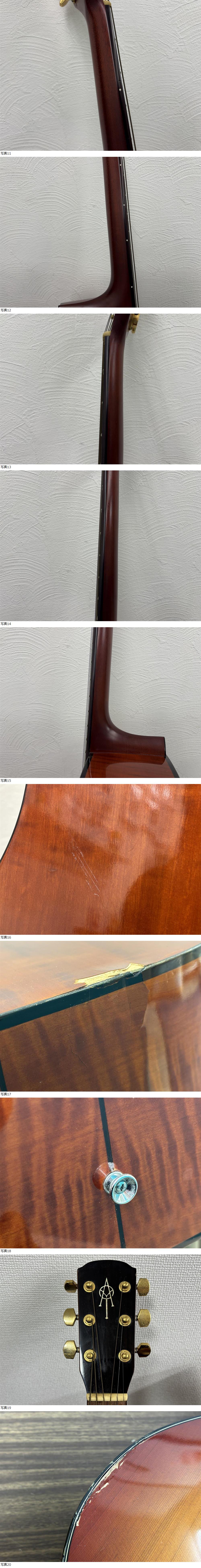 出品の商品は 21417★K.yairi ヤイリ アコースティックギター YD-65N ANNE 1997 54716 弦楽器 になります。 出品詳細を最後まで読んで頂き、入札をご検討下さい。 ・画像で詳細・状態をご確認ください。 ・頂き物です。 ・長期間保管品です。 ・メンテナンス等していない中古品です。 ・当方素人の為実際の音出し確認等していません。 ・傷や汚れがあります。 ・ボディの底面、表面の左側側面に打痕、凹み、割れ、ヒビがあります。 ※画像をご確認ください。 ・ケースはありません。 ・全長約102.5㎝ ・ナット約4.2㎝ ・ネック約61.5㎝ ・ボディ長さ約50㎝ ・ボディ厚み約12㎝ ・サウンドホール直径約10㎝ ※全て素人寸法ですので目安程度にお考え下さい。 ・現状品、ジャンク品としてのお渡しになります。 ・ご確認したい点があれば、質問よりご連絡ください。 専門知識が必要なご質問にはお答え出来ない事もありますが、可能な限りご返答させて頂きます。 ・画像が全てとなりますので掲載画像をご覧の上ご判断頂きご入札をお願い致します。 | ||||