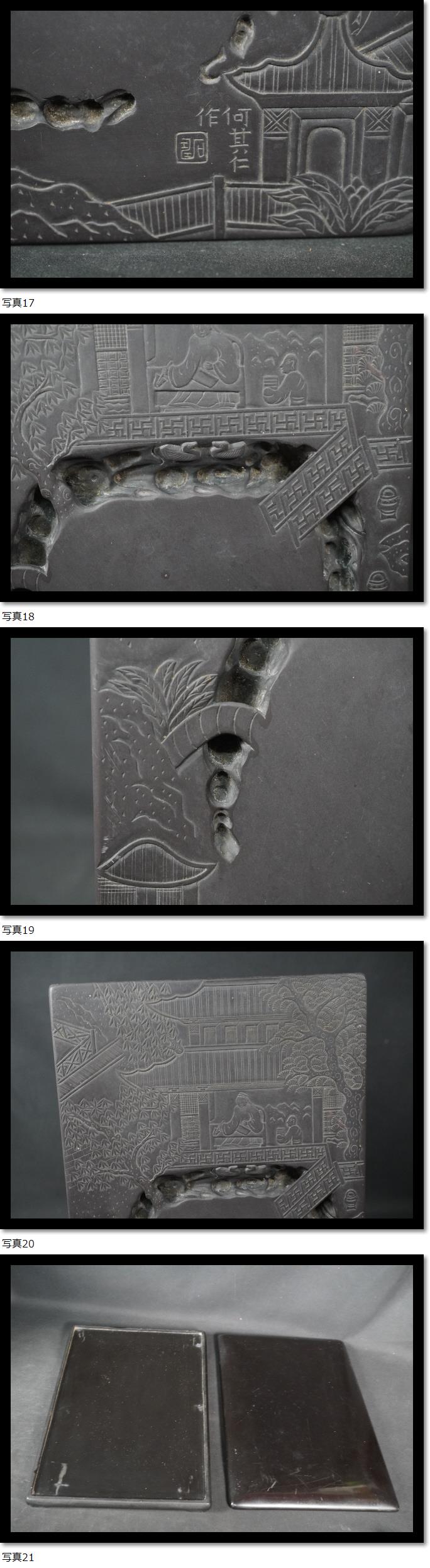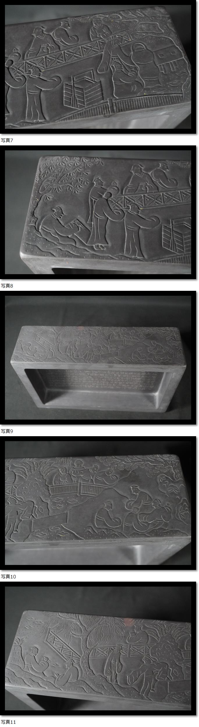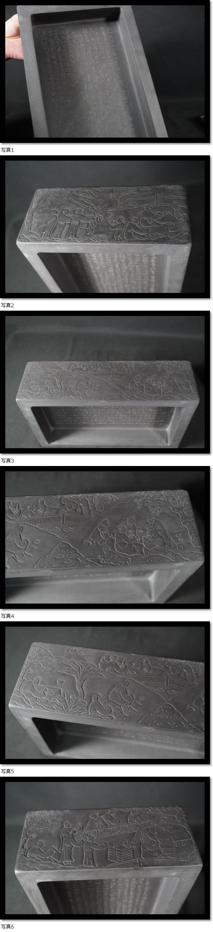 硯② 大きな硯 何其仁作 書道具 瑞渓石 彫刻 書道 書画 漢詩 唐物 中国美術 古玩 古美術 唐木蓋台 緑端渓 重量約9Kg 骨董 收藏