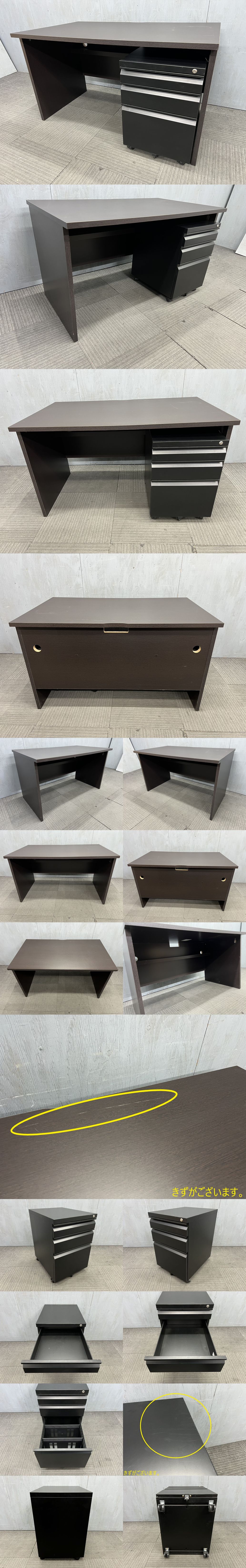 ◆管1635◆自社便対応地域あり◆ベガコーポレーション◆木製平机 幅1200mm◆オフィスコム◆3段デスクワゴン◆天板 茶色 ブラウン系 收藏