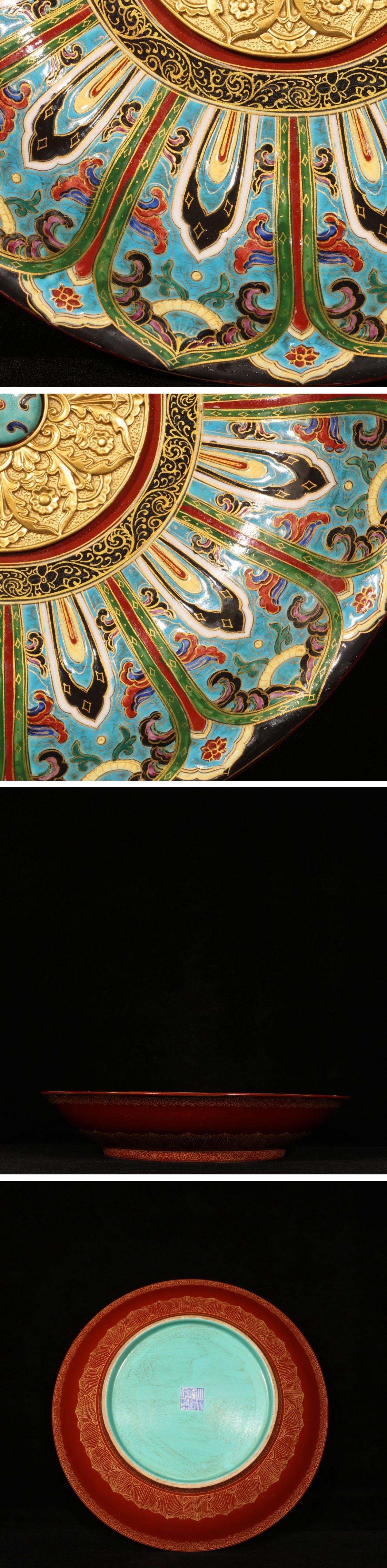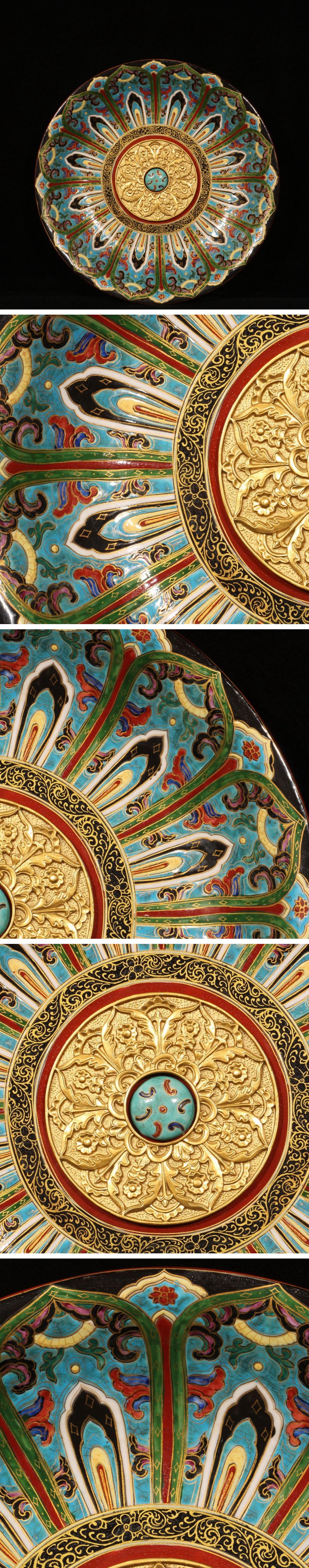 【清】関西某オークション購入 中国伝来 清時代物 大清乾隆年製 描金蓮花紋賞盤 当時物 時代コレクション8L1-YS3 收藏
