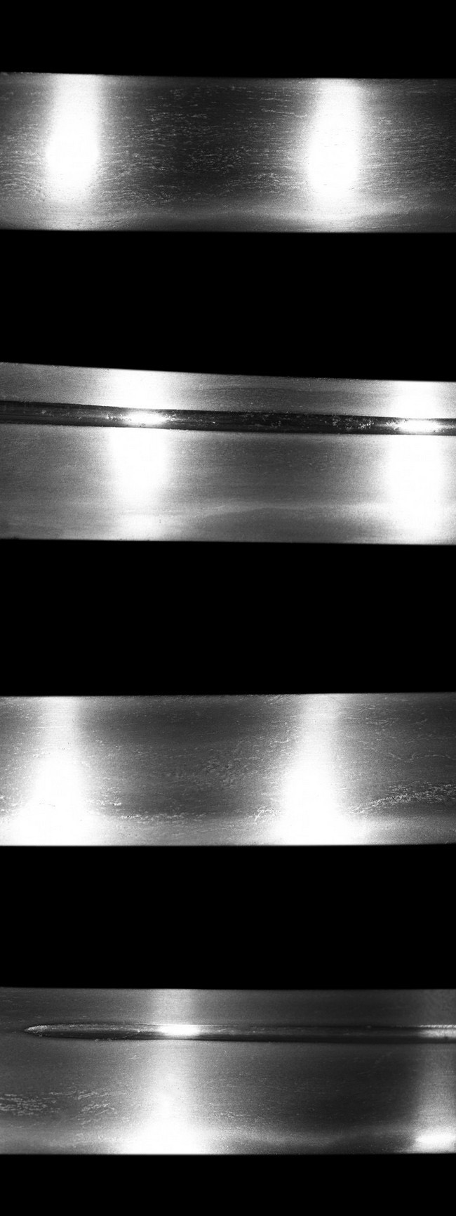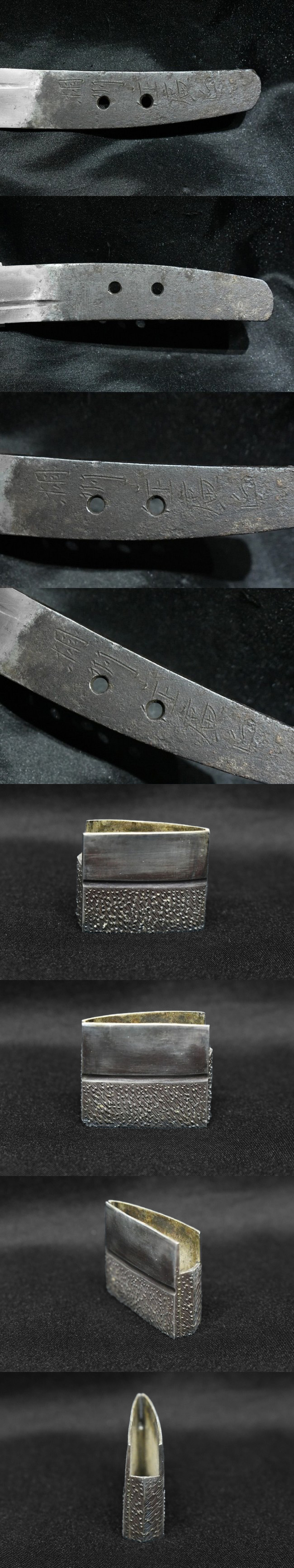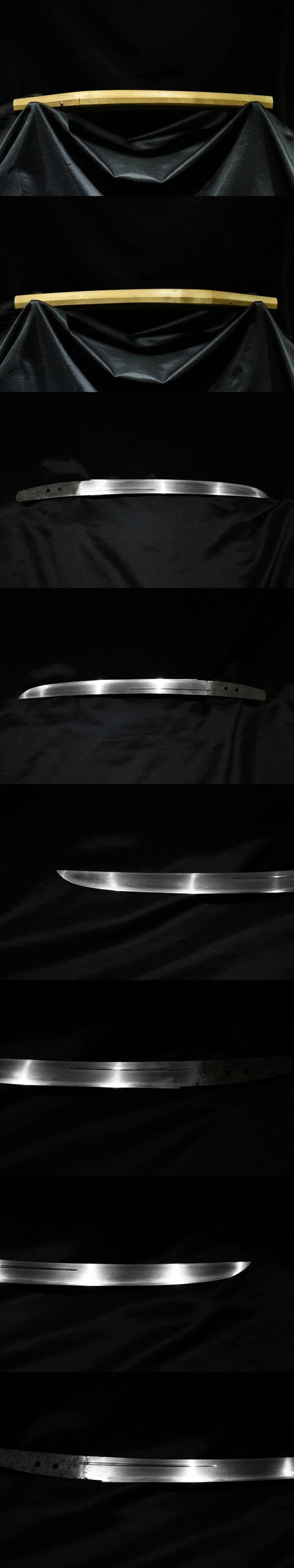 表【相州住廣正】 裏【-】 種別: 脇差 サイズ:長さ 30.9cm 反り: 0.4cm 目くぎ穴 2個 元幅:約 2.902cm 元重:約 0.506cm 先幅:約 2.229cm 先重:約 0.352cm 刀身重量:約 216.9g(ハバキ・柄をとった状態) ハバキ重量:約 24.8g 鞘全長:約 48.1cm |