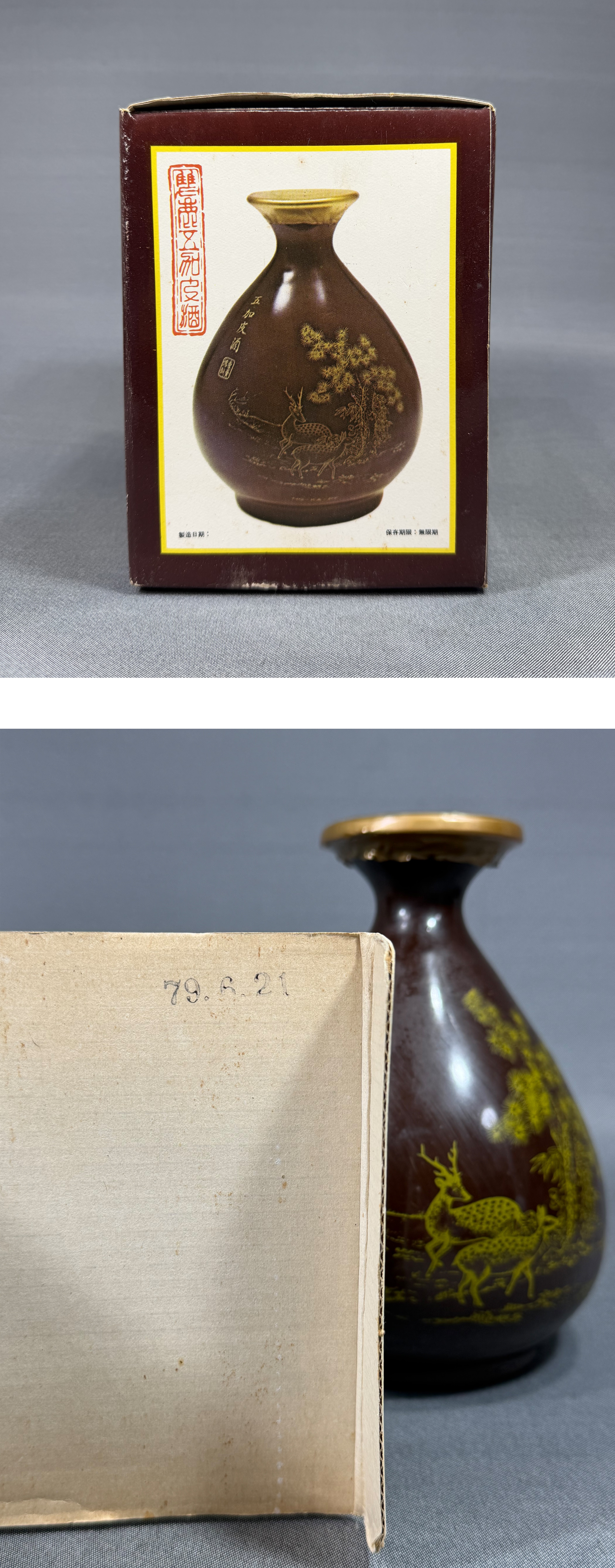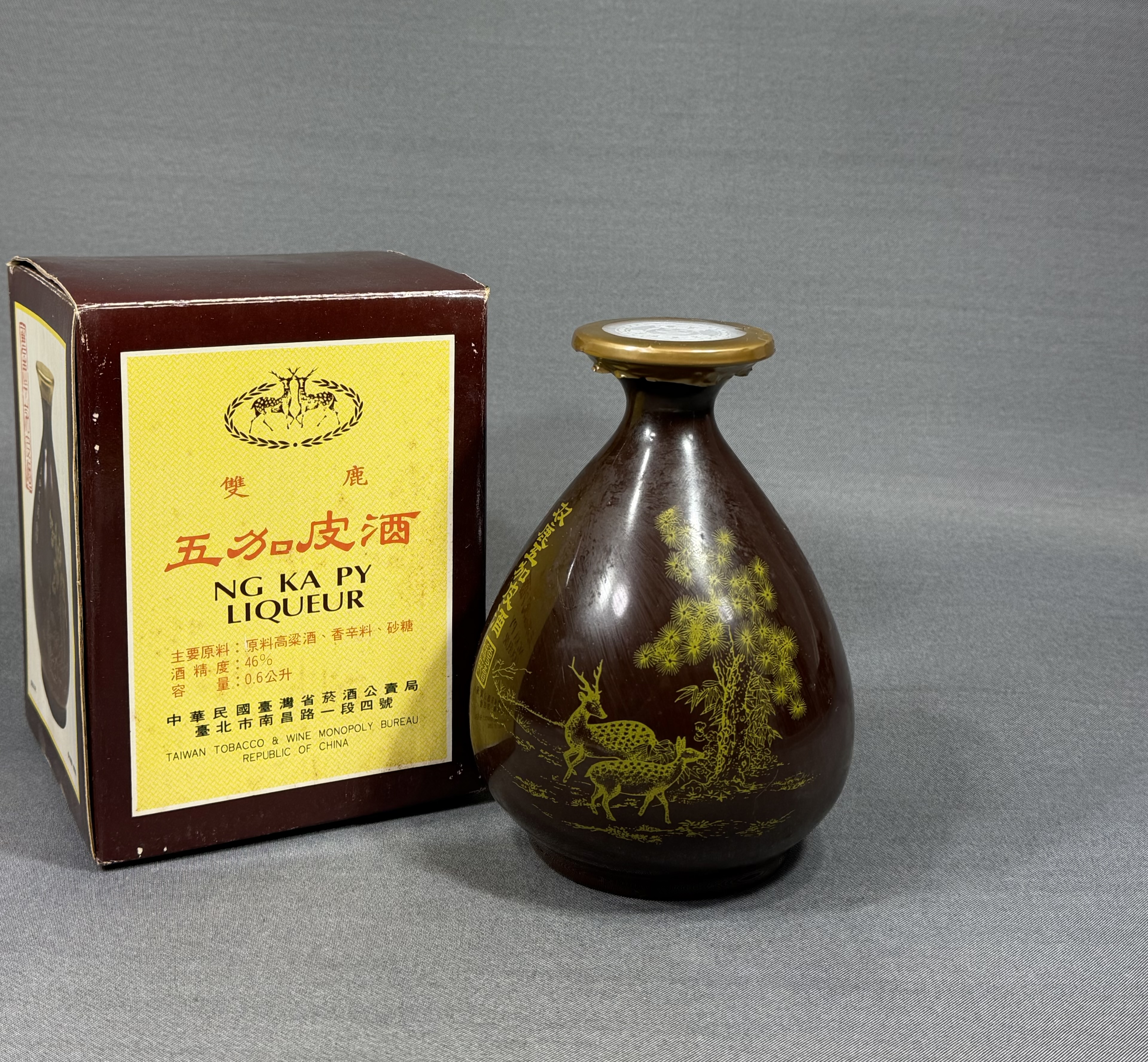 【風車】古酒 希少 中国酒 台湾酒 中華民国 雙鹿五加皮酒 陶器ボトル ▲ 600 ml 未開栓▲中華民国台湾省酒公売局▲ 收藏