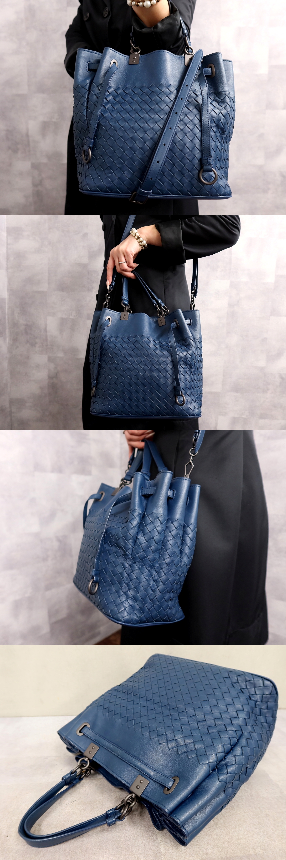 ●超美品●BOTTEGA VENETA ボッテガ ヴェネタ●イントレチャート●カーフ レザー 本革●2way ハンド バッグ●ブルー●肩掛け●B5●Js65691 收藏
