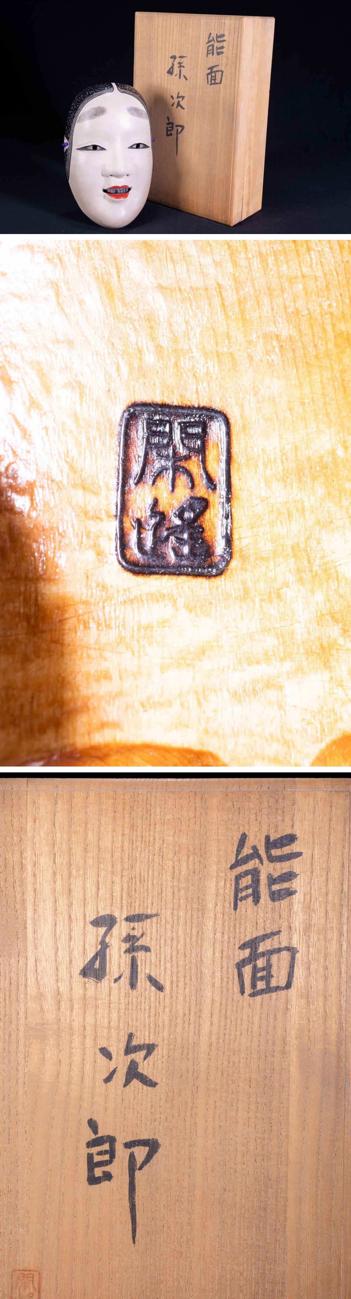 【珍品堂】1円から 能面 女面 小面 能楽 若女 木彫り 孫次郎 在銘有 時代物 古美術 骨董品 H7cm。重178g N-B4D-1 收藏