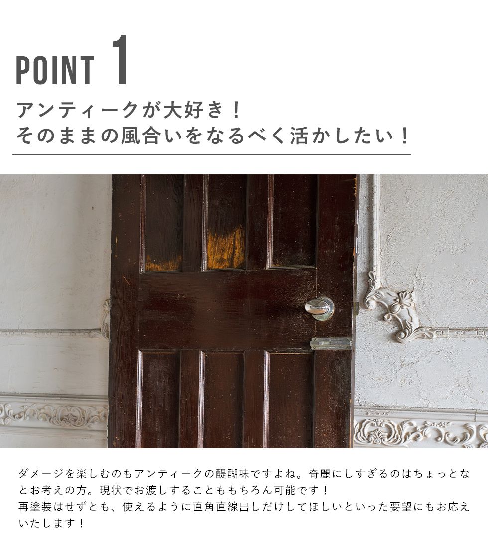 イギリス、フランスを中心にヨーロッパ中から直接買い付けをした本場のアンティーク品となります。 高級なイメージのアンティークですが、当店ではリーズナブルにアンティークをお楽しみい頂けるよう、ステンドグラスは一度に1,000枚以上。アンティークドアも100枚以上を一度に輸入。 全国でも有数の買い付け量を誇ります。 創業以来現在の買い付け量を保つ事で、現地ディーラーとの密な信頼関係を構築。当社に向けてより良い物を提供してもらえる環境作りを維持し、現在では現地取引先約20社と提携しています。 また当店ではアンティークのプロフェッショナルが常駐する工房を完備。修理、メンテナンスはもちろん、ステンドグラス、ドアの制作からカスタムまで、アンティークのご相談はウェリントンにお任せください。 ネットに載っていない商品もまだまだございます。京都伏見のショールームにも是非お越しくださいませ。 ※修理に関するご注意※ ■ 標準修理に関しては別途料金にて承ります。事前に仕上がりサイズを必ずご確認くださいませ。 ■ 標準修理をご依頼の場合、決済確認後の着手となります。恐れ入りますが代引きでのご決済はお断りしております。 |