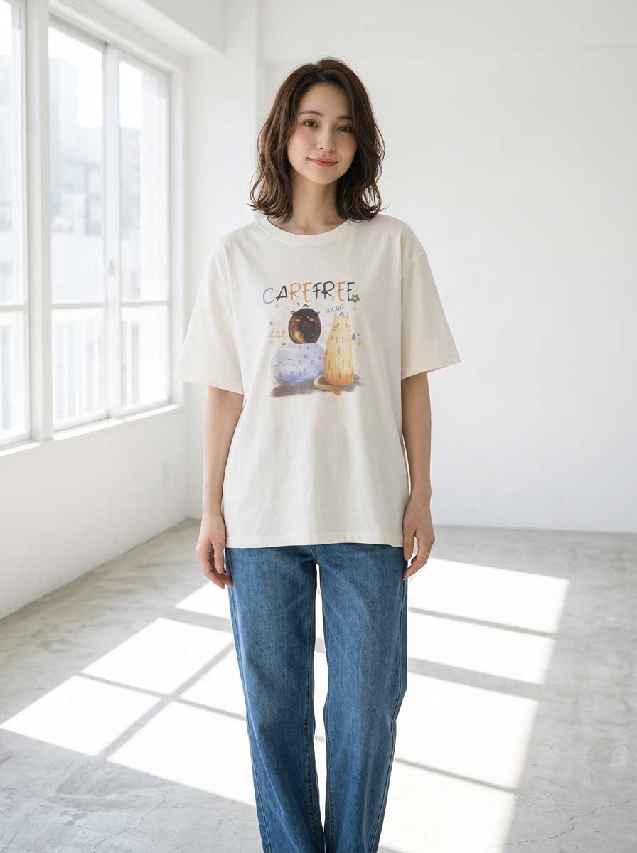 日常に和やかな癒しを。大人のための猫プリントTシャツ。