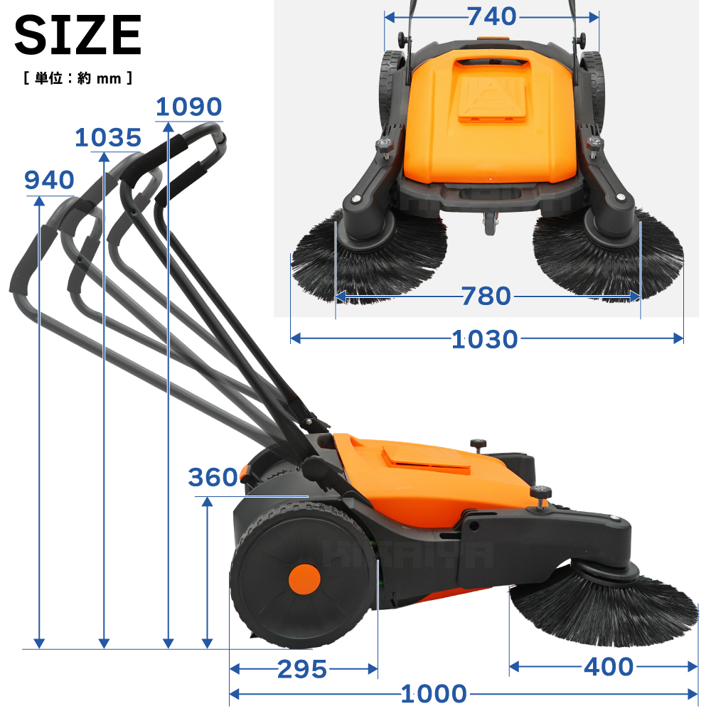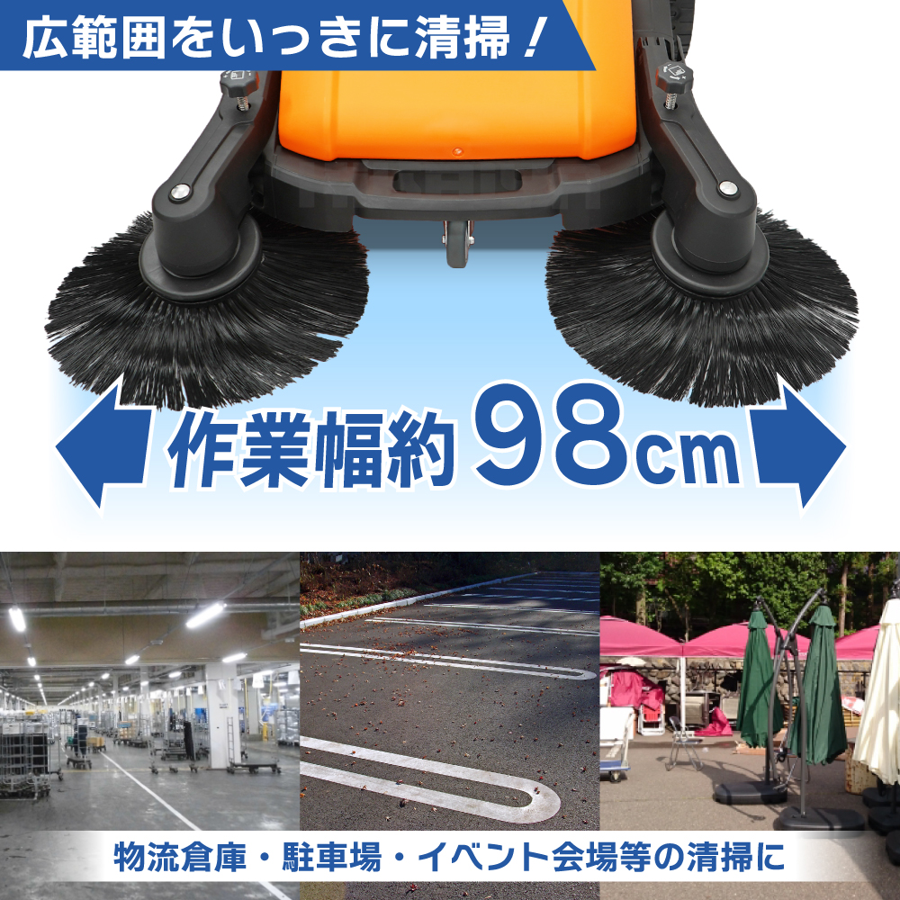 掃除スイーパー 45L 手押し式 大型 大容量 広範囲 作業幅980mm 屋外 屋内 電源不要 手動掃除機 業務用 KIKAIYA 收藏