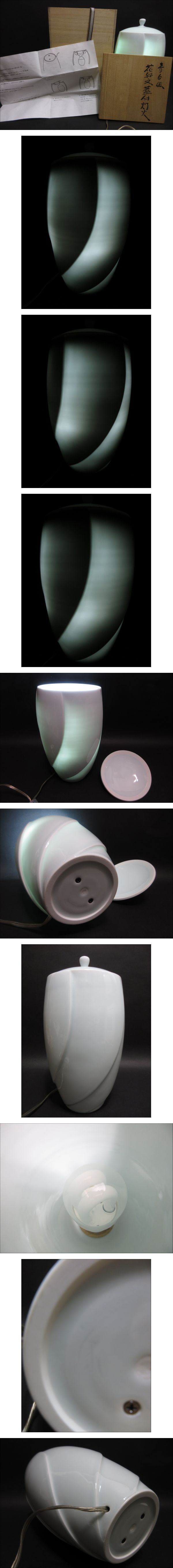 石井康行 真作保証・在銘。照明 (高さ31.5cm)・蓋付灯火(ランプ) 白磁オブジェ・置物 *共箱・説明書・黄布付 收藏