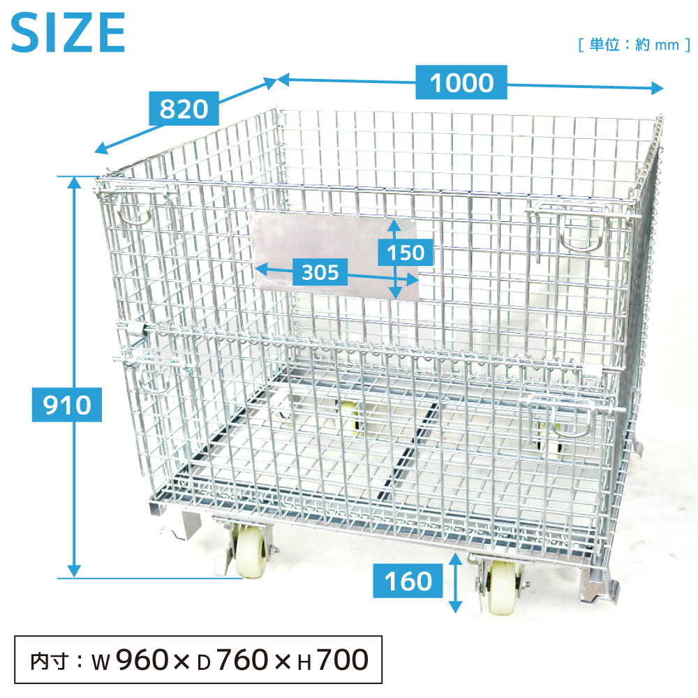 メッシュパレット 中 ブレーキキャスター付き 業務用 幅1000×奥行820×高さ910mm 網パレット パレティーナ KIKAIYA 收藏