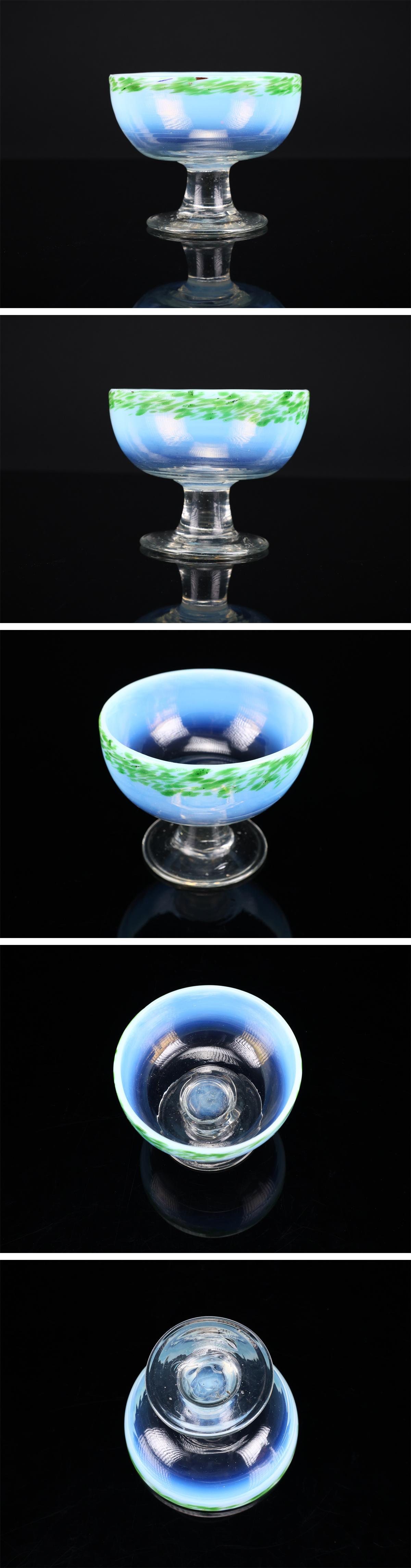 【吉】PD413 明治大正期 【ウランガラス】 乳白緑吹雪 氷コップ 高8㎝/美品! 收藏