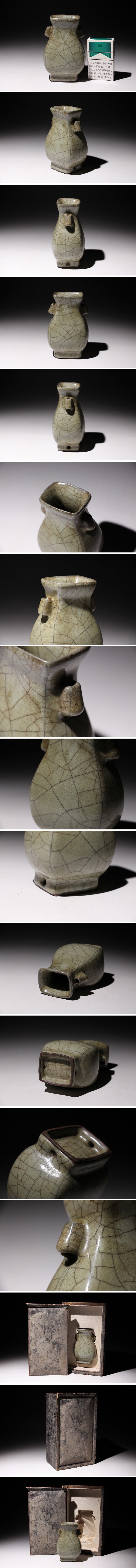 | ◇商品説明◇ | 官窯管耳瓶の出品です。写真の木箱に収まっております。状態につきましては、スレ、キズ、ヨゴレ、窯キズ等がありましたので画像にて御確認の程宜しくお願い致します。
