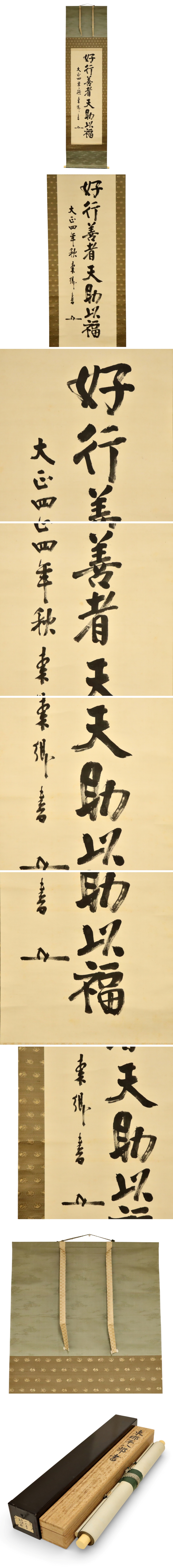 真作保証 元帥海軍大将 東郷平八郎 肉筆 一行書 二重箱 絹本 掛軸 書画 骨董品 美術品 2744wdzN 收藏