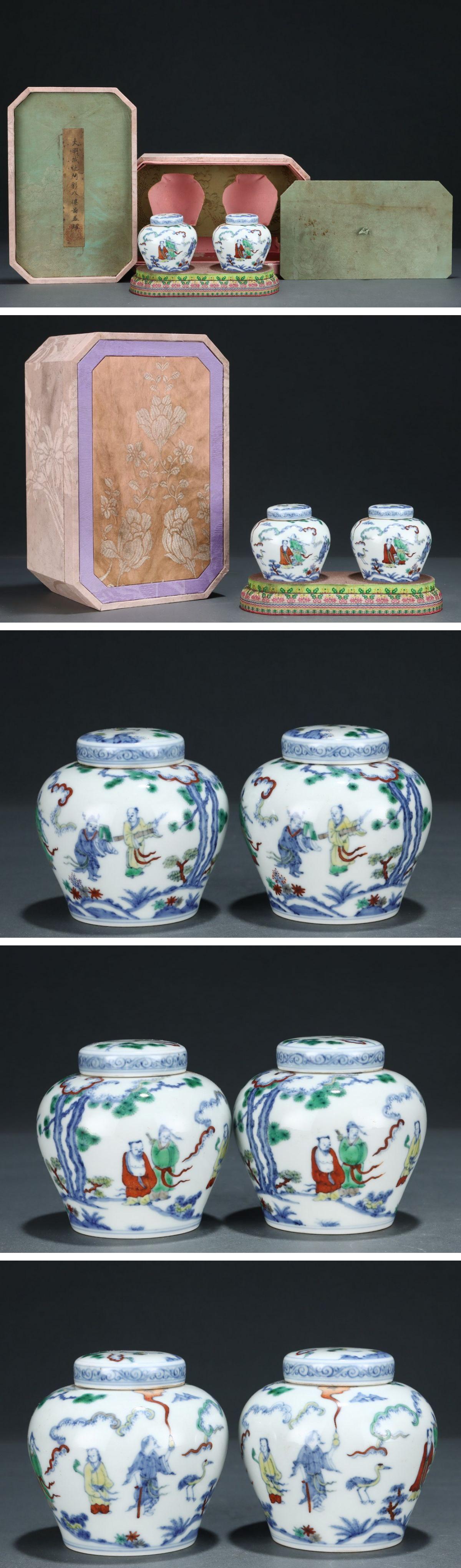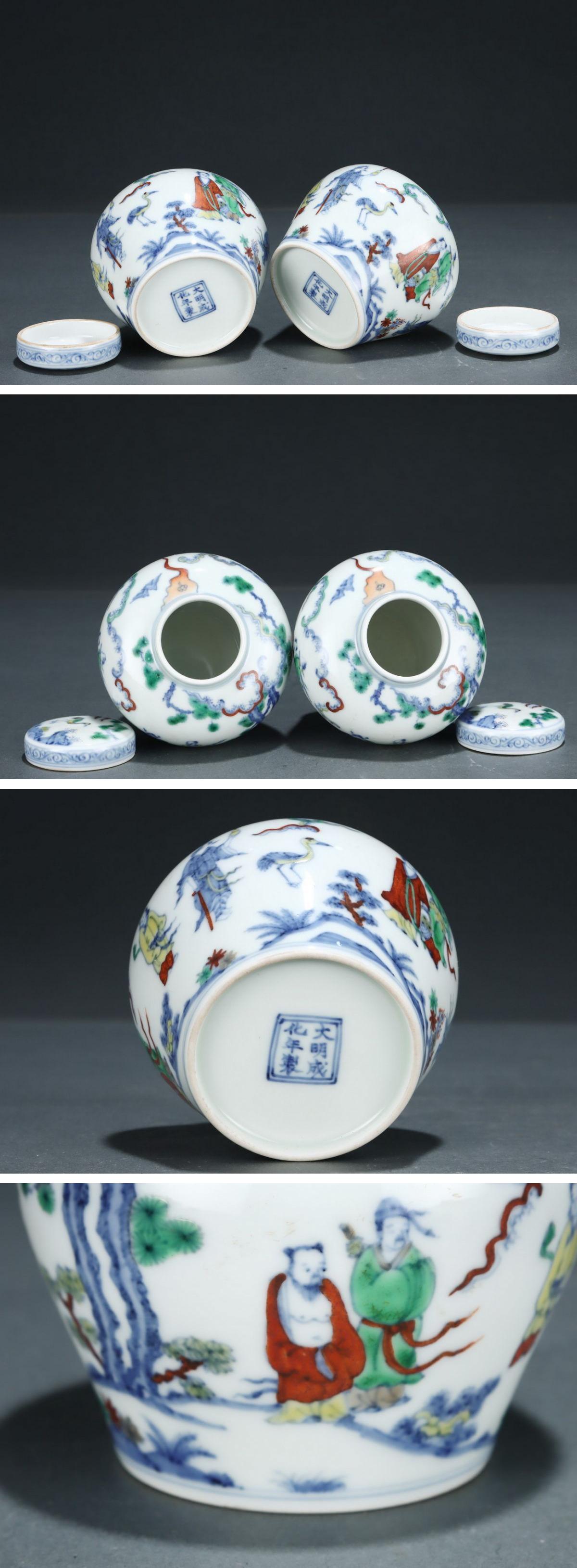 【清】関西某オークション購入 中国伝来 明時代物 大明成化年製 斗彩八仙人物紋茶入 当時物 時代コレクション8L1-ZP6 收藏