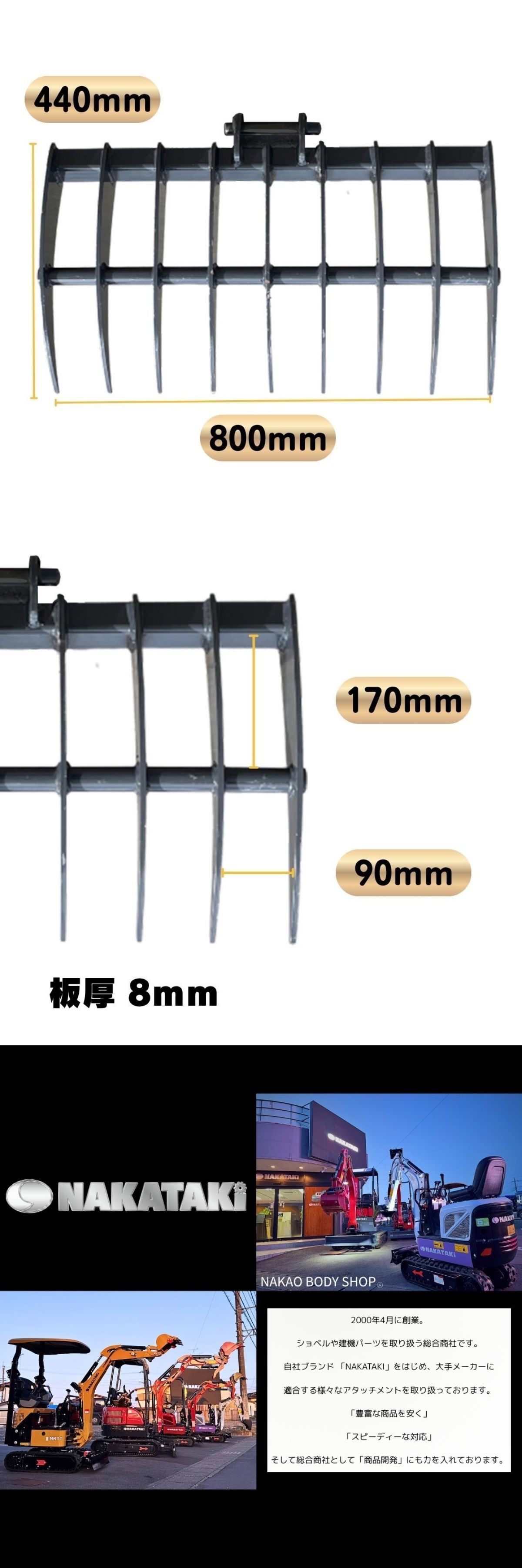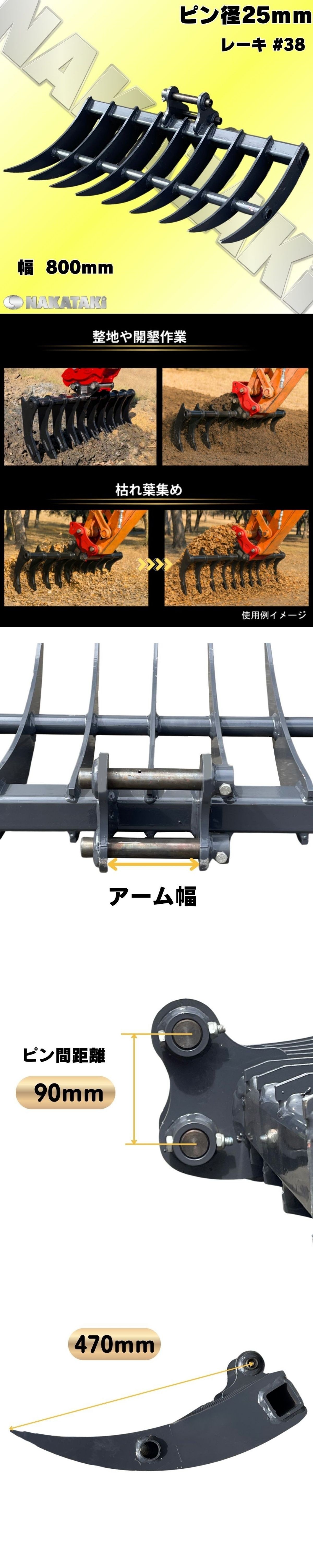 レーキ セール特価!【NAKATAKI#38】コマツ PC02 PC03-1 PC08UU PC10MR-1 他/ Φ25 集草 除草 バケット 重機 アタッチメント ユンボ Z3