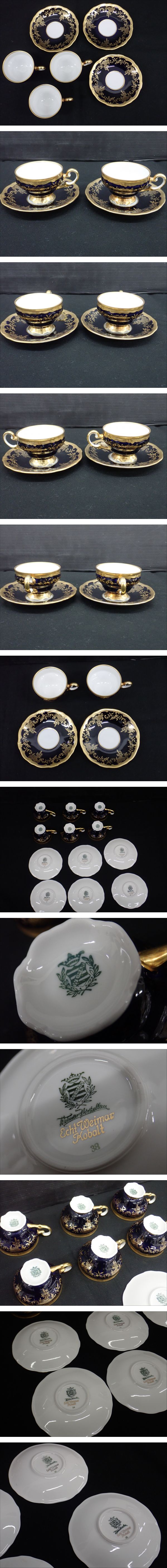 DA225-80 希少 ドイツ ワイマール コバルト 金彩 ティーセット Echt Weimar Kobalt カップ&ソーサー 6客 ポット/シュガー/クリーマー 收藏