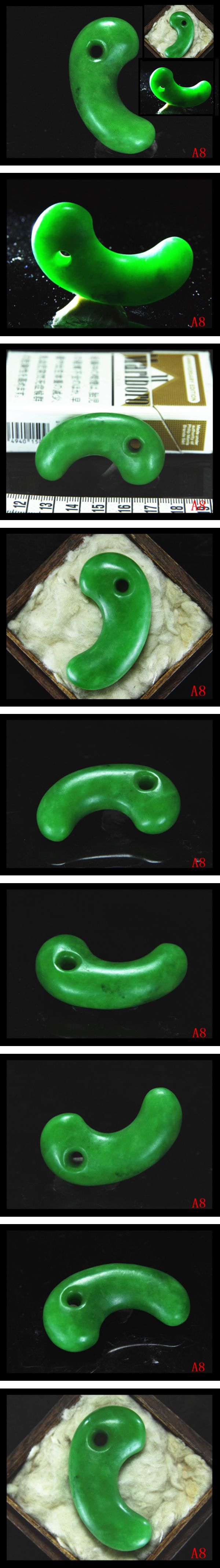 【A8】古墳期★透光性姿形抜群味わい深い濃翠緑色★極上ろうかん質硬玉翡翠製★極希少迫力コ字形勾玉★検★縄文出土器法具仏像原石 收藏