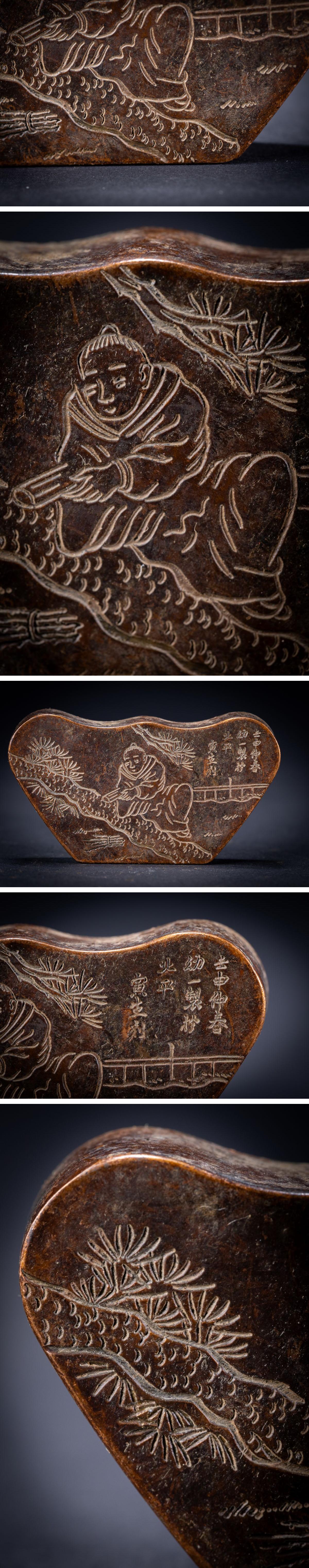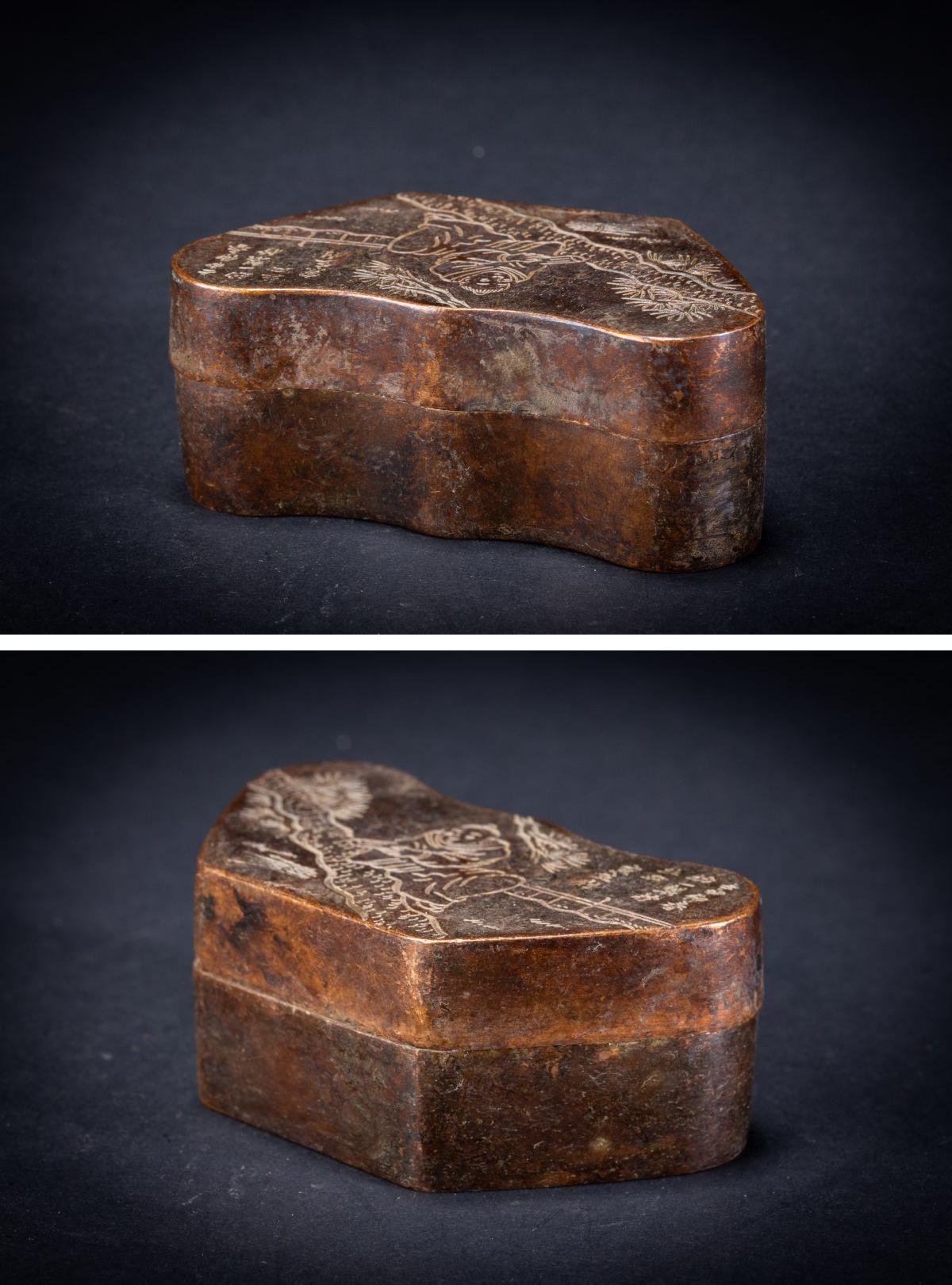【珍品堂】1円から H3cm 中国美術 瑞珍作 唐人物彫 銅製 銅器 香合 時代物 古美術 骨董品 重113g N-A15-NO 收藏