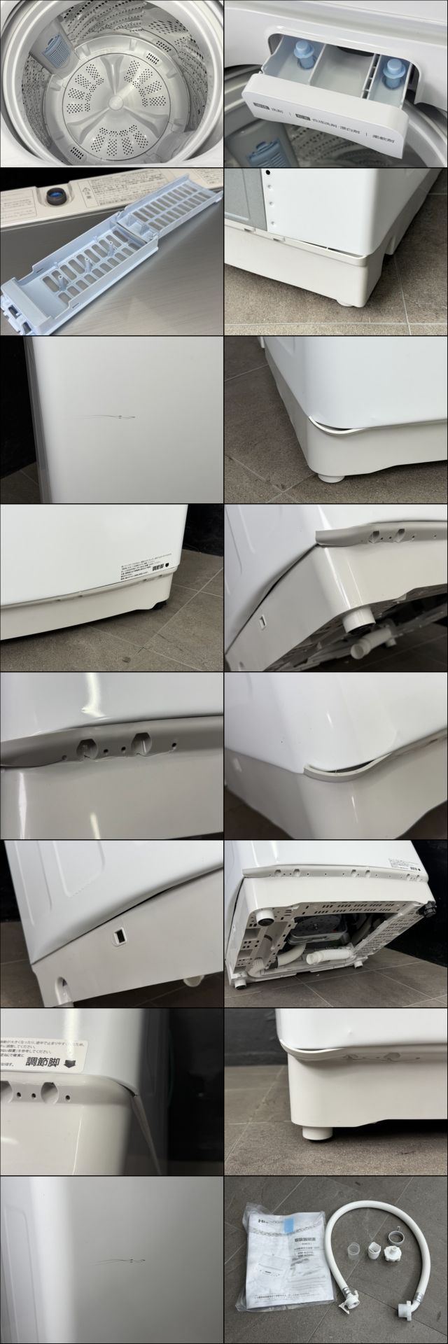 状態チェック担当者のコメント 使用に伴うスレ傷があります。 左足元が大きく歪んでいます。 フレームの割れも沈んでいる感じもございます。 調整脚で調整しても少しぐらつきがある状態です。 画像にてご確認ください。 槽内は綺麗です。 動作 動作ランク A 動作問題なし