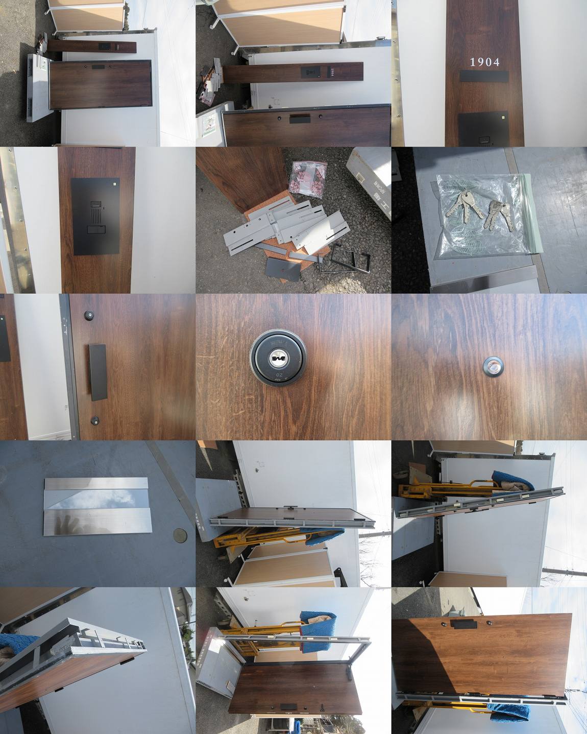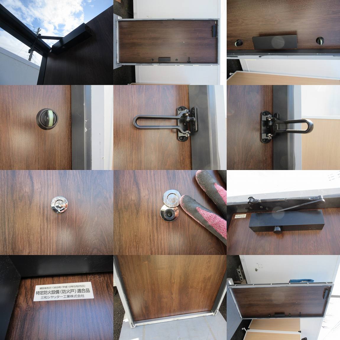 E628●三和シャッター(防火戸)/玄関ドア/未使用展示品■・キー6本・ドアホン付き・右開き/ブラウン木目調/エントランス部品あり 收藏