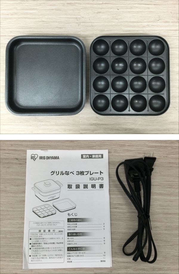 ●営KZ187-100【通電確認済】IRIS OHYAMA アイリスオーヤマ ホットプレート IGU-P3-D グリル鍋 3枚プレート オレンジ 2023年製 元箱付き/k 收藏