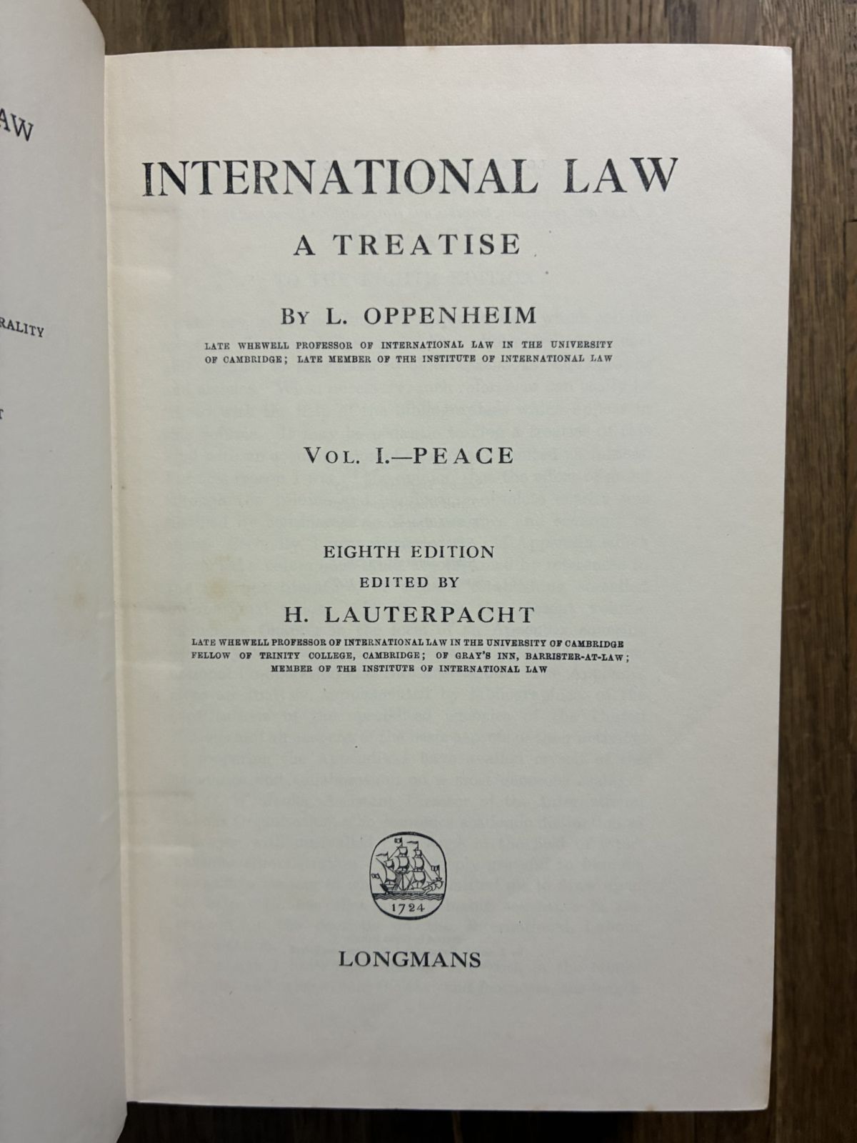 オッペンハイム『国際法論 第1巻 平和 第8版』 L. Oppenheim, International Law: A Treatise.国際法洋書古書 收藏