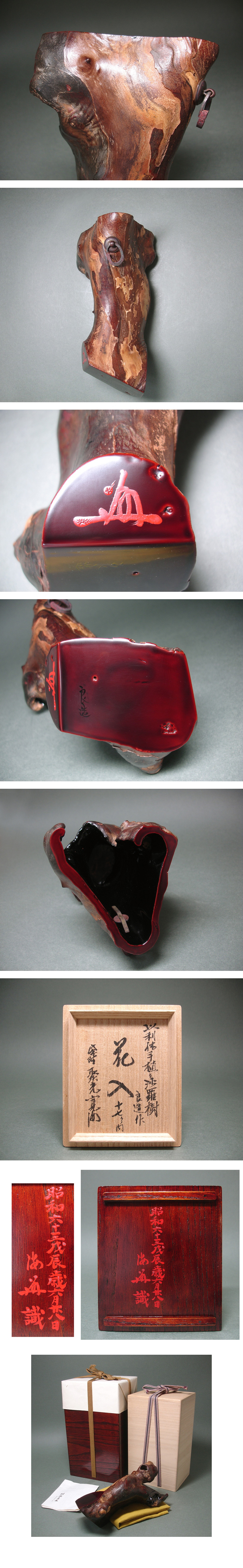 慶應◆人間国宝【川北良造】作 利休手植沙羅樹造 古材掛花入(十七の内) 大徳寺塔頭 聚光院「小野澤寛海」花押 書付あり 二重箱入 收藏