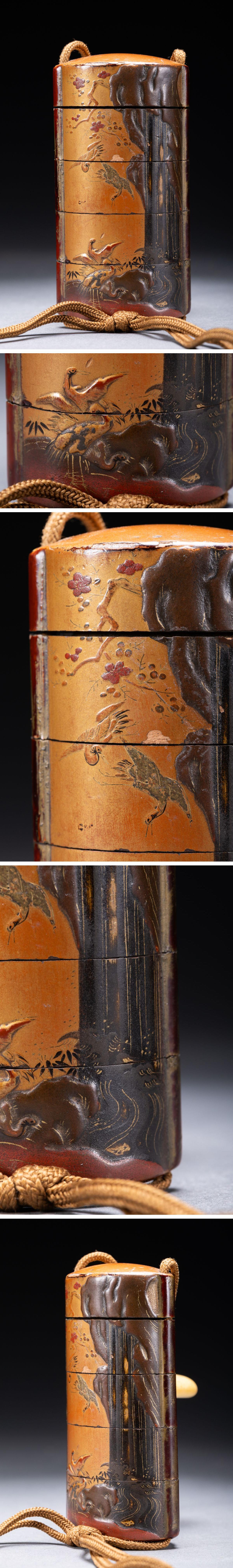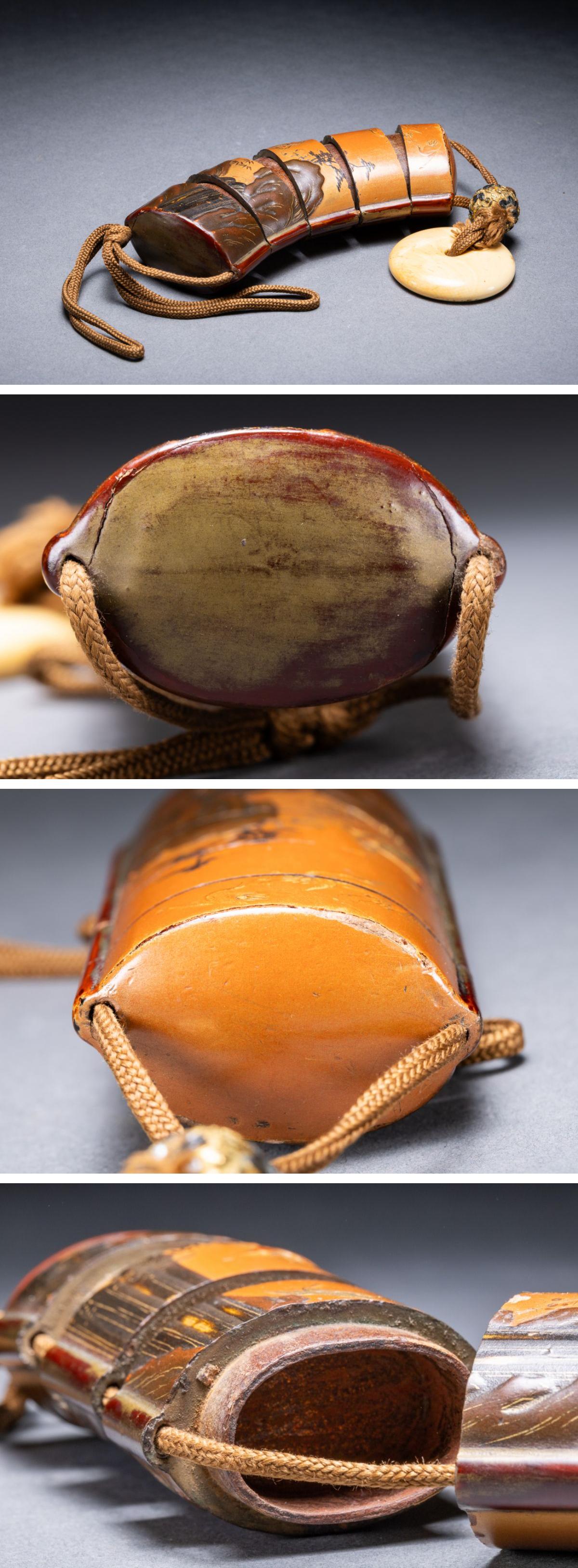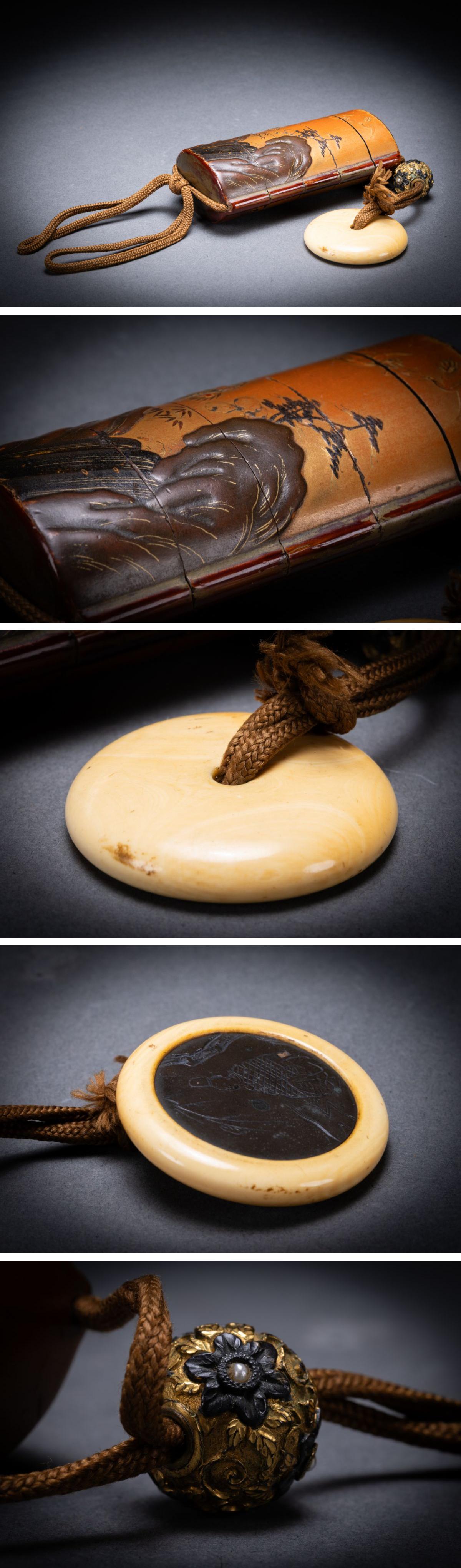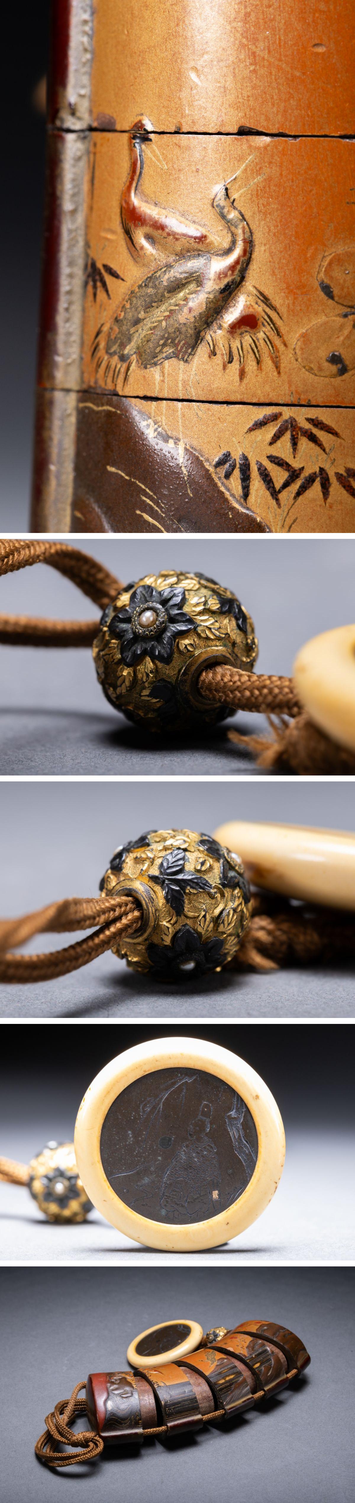 【清】関西某オークション購入 江戸時代 山水図金蒔絵印籠 象嵌書緒替玉 極細工 古置物 古擺件 古美術7L11-94S5 收藏