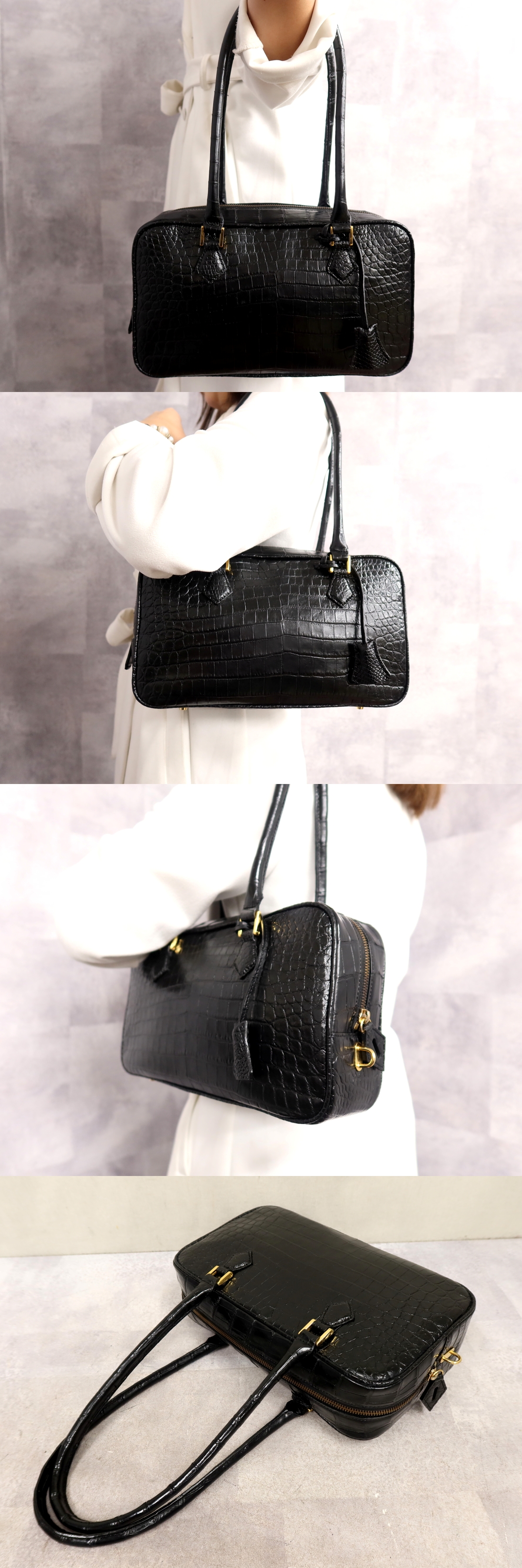 ●超美品●Toukagen トウガゲン●マット クロコダイル 本 ワニ 革●ショルダー ハンド バッグ●黒●ゴールド金具●肩掛け●かばん●Js63852 收藏