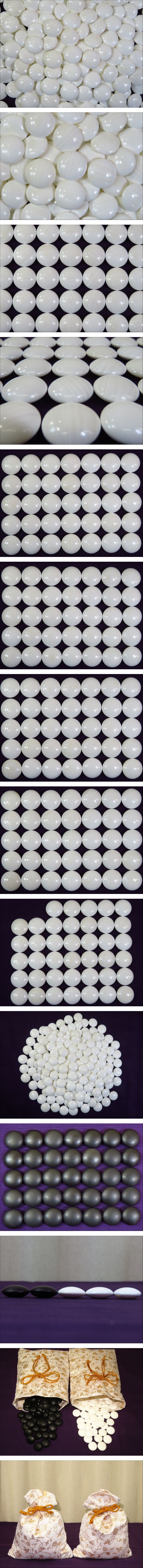 厚さはランダムに数個確認いたしました所、いずれも充足いたしておりました。ワレ・ホツのある石は私がざっと確認した限りありませんでした。状態は非常に良いといえると思います。全ての白石の表裏をUPいたしました。是非ご覧いただきご確認をお願い致します。