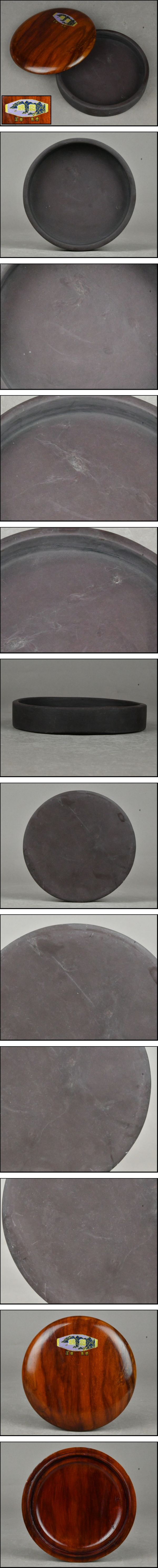【ACT】中国美術 唐物【注册 商標】端渓硯 歙州硯 老坑 氷裂 丸硯 唐木蓋 文房四宝 書道具 ④ A8-0128-6 收藏
