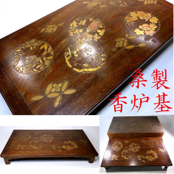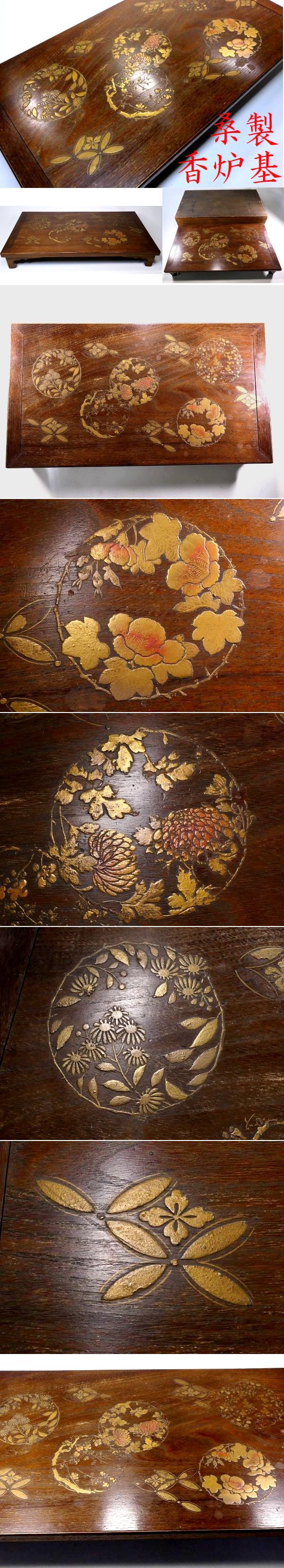 【 恵 #2053 】 花ノ丸金蒔絵の見栄え良き一品 桑製 香炉基 香炉台 共箱有 高蒔絵 飾台 漆芸品 收藏