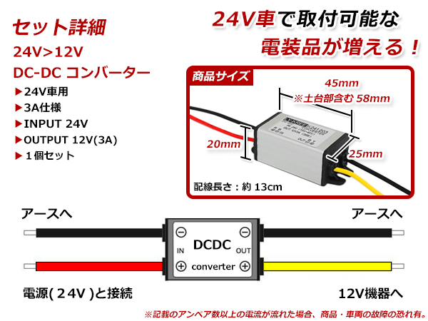 3A DC24V→DC12V変換 DC-DC コンバーター 出力DC-DCコンバーター 24V⇒12V デコデココンバーター/バス/トラック/ダンプ/大型車 プロ仕様