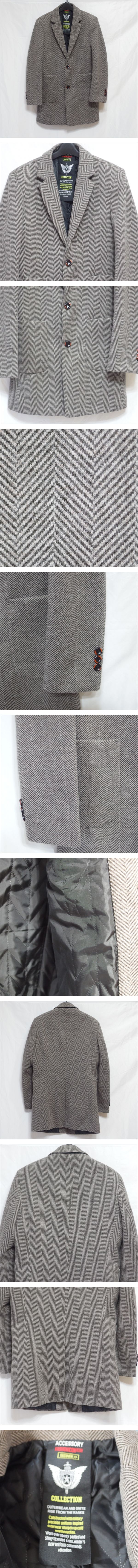 FHLHY◆フルハイ メンズ ヘリンボーン柄 裏キルティング ウール混 テーラードジャケット(ブラウン)サイズ175 92A 防寒 ◆USED S | |||