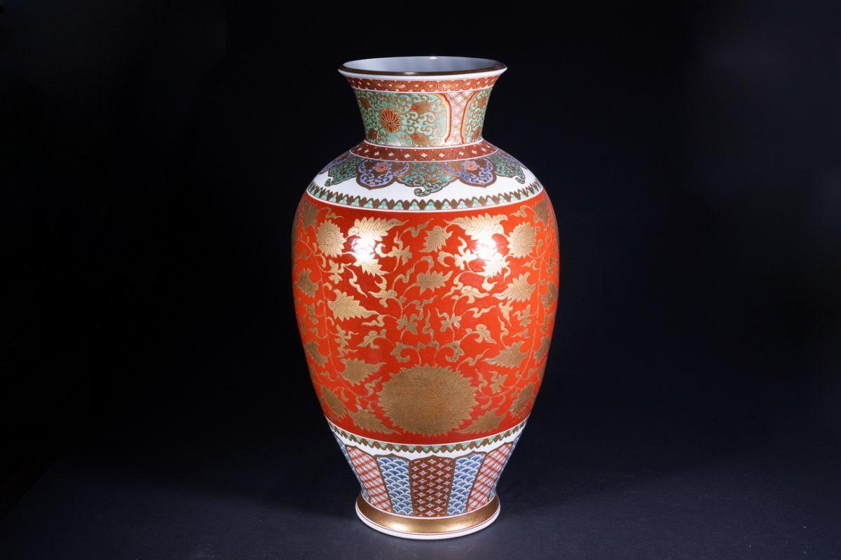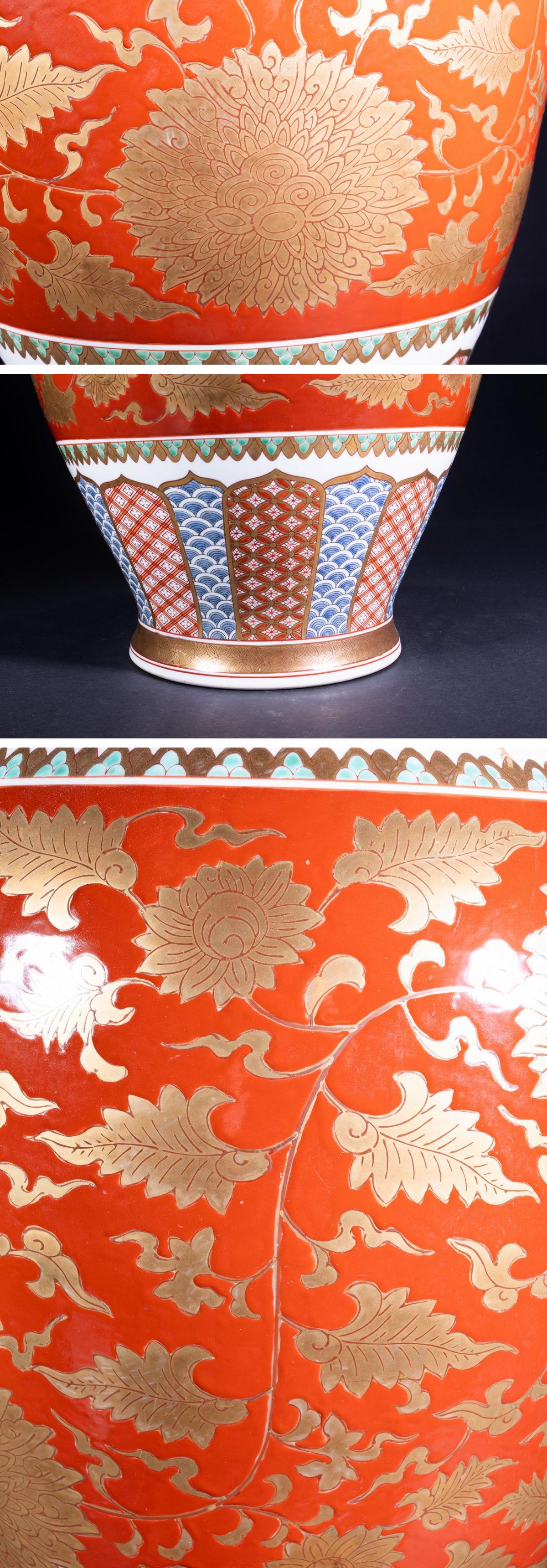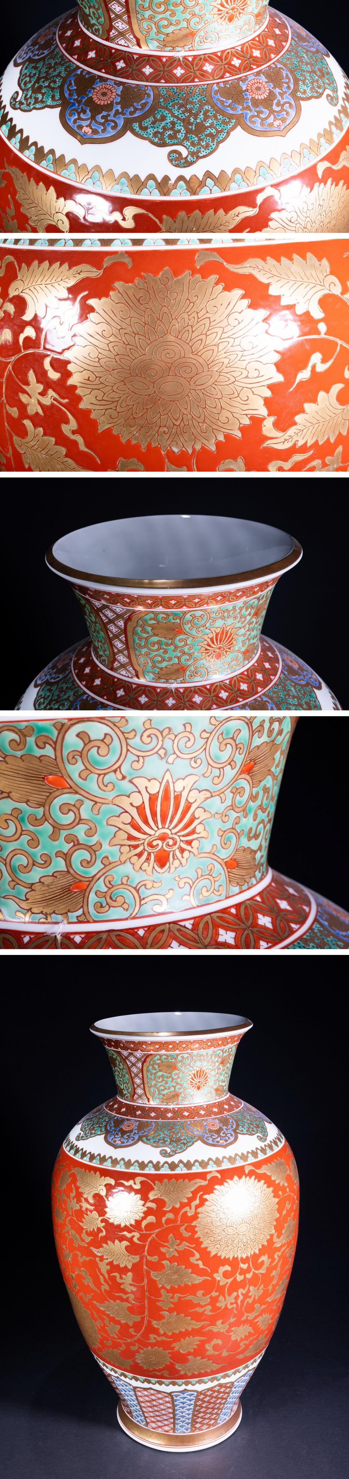 【珍品堂】1円から 大花瓶 金蘭手 染錦 色絵 唐草紋 花絵 飾壺 希少 花瓶 美品 伝統工芸 H74.3cm N-A6AC-SR12 收藏