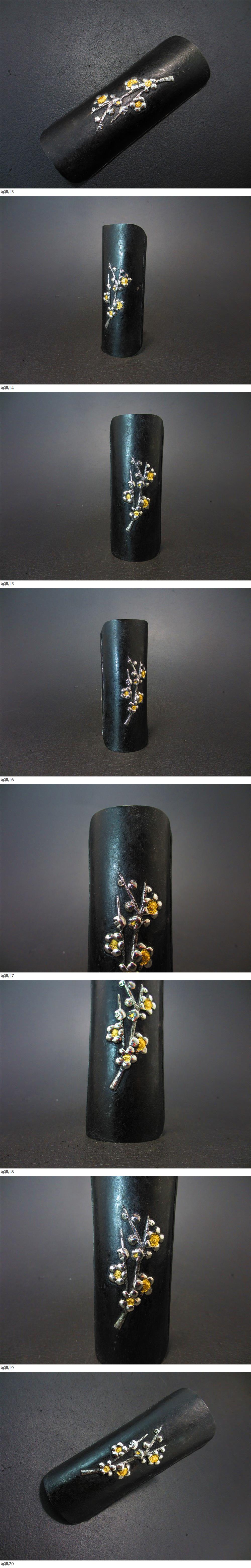 | 古鉄打ち出し 富貴梅花銀細工金工象嵌茶合 茶量 仙媒 煎茶道具 商品寸法 高さ2.5cm 縦径4.5cm 横13.5cm |