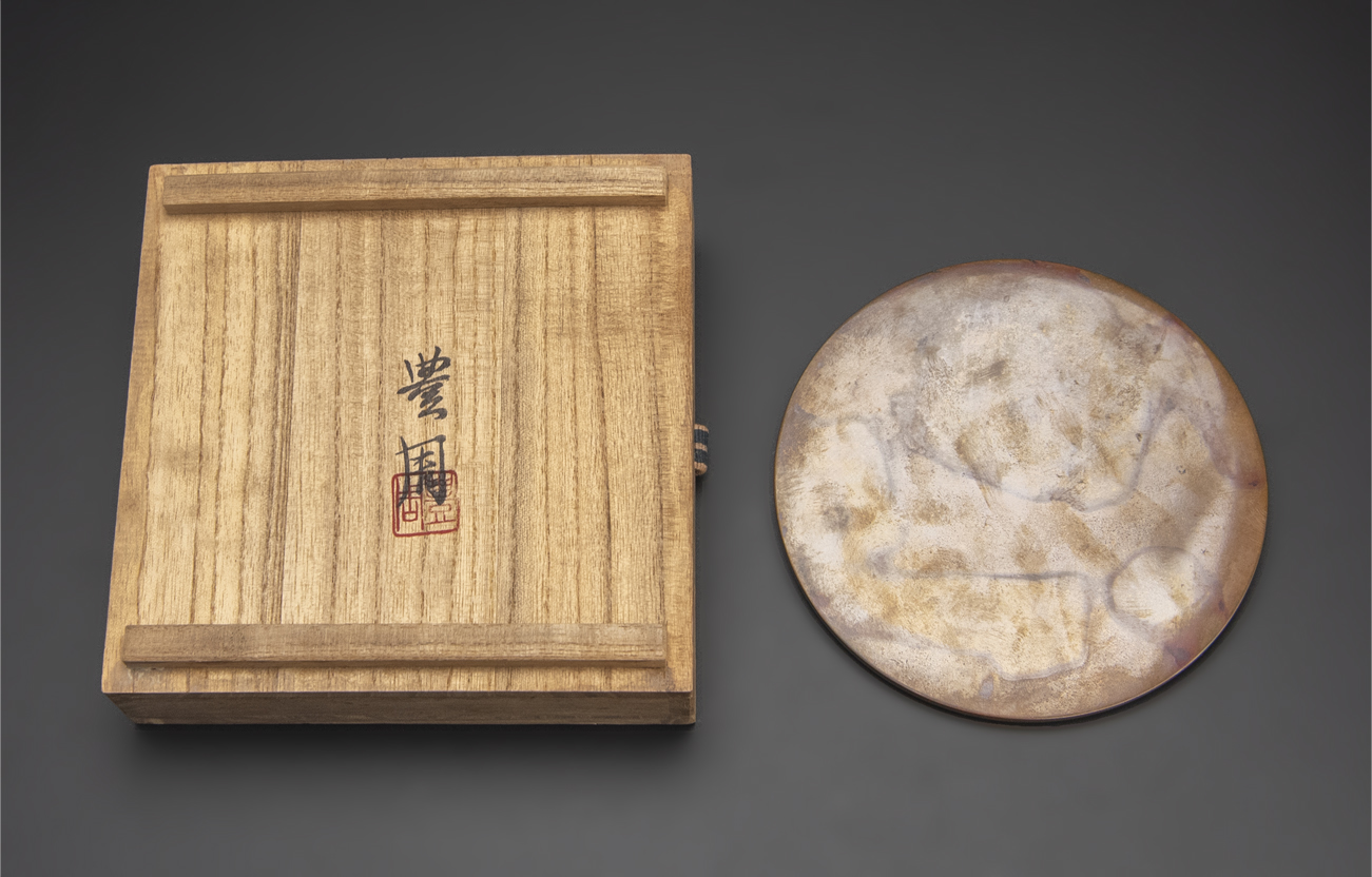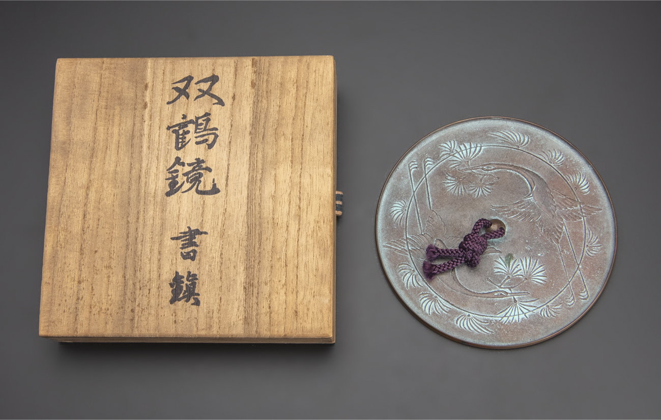 人間国宝 高村豊周 作 銅製 双鶴鏡 書鎮 共箱 銀座和光 共シール 古美術 收藏
