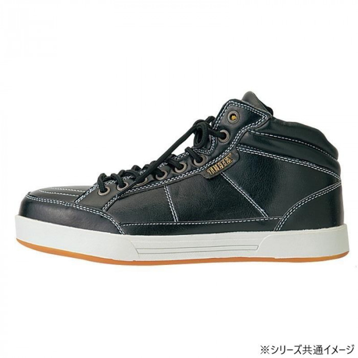 | 履き口広めで足入れしやすい、人気のミドルカットです。つま先部分には鋼製の先芯が装備されています。 |