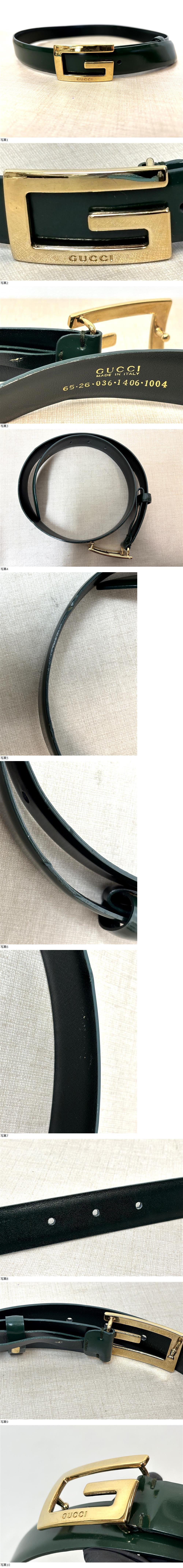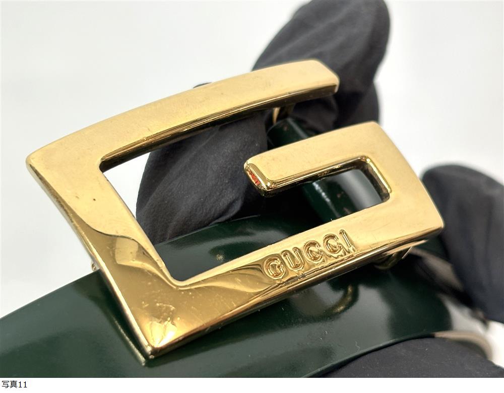 | IN25/GUCCI/レザーベルト/ダークグリーン・ゴールド/Gマークロゴ/グッチ/ベルト |
