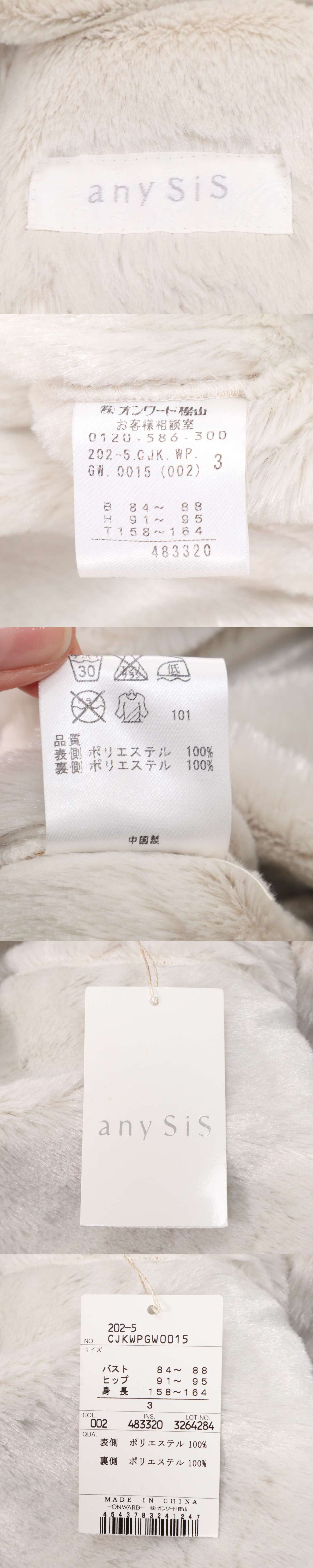 未使用★ any SiS エニィスィス 秋冬 裏起毛★ フェイク ファー ムートン ジャケット Sz.3 レディース 白 收藏