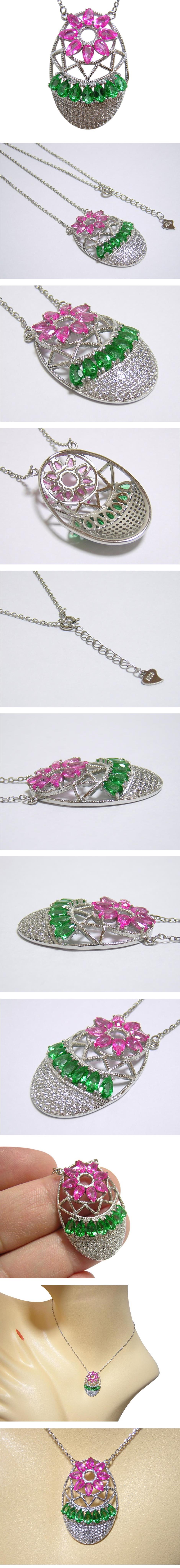 鮮やかなピンクとグリーンのトパーズは、ブラジル産の天然トパーズに特殊なコーティング処理を施すことで、この魅力的な色を実現しています。 【中石】天然トパーズ 【産地】ブラジル産 【処理】コーティング処理 【カット】ペアファセットカット 【脇石】キュービックジルコニア 【重さ】7.4g 【サイズ】チェーン44cm(内アジャスター部3cm) トップ:32×21mm 【素材】シルバー925 (14金ホワイトゴールド仕上げ) 【刻印】S925 【状態】新品 |