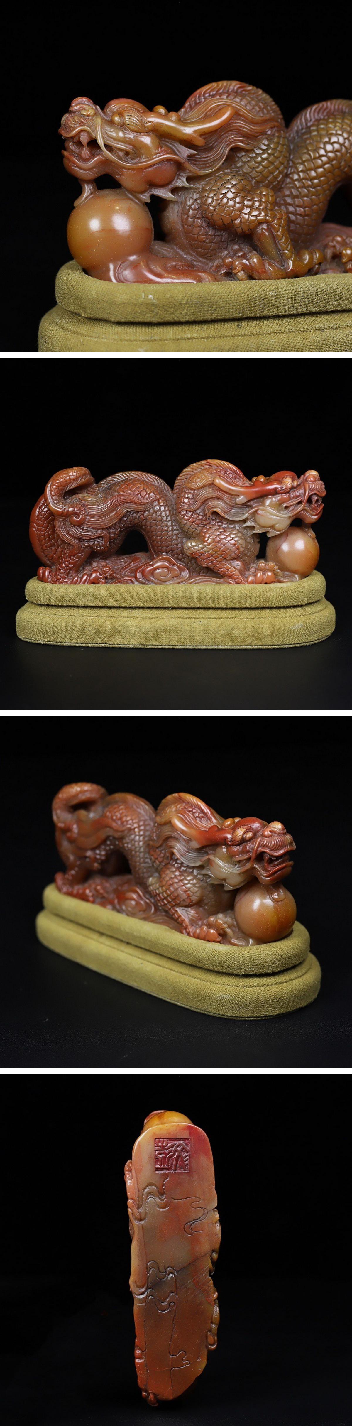 【清】関西某オークション購入 中国伝来 清時代物 寿山田黄石 走龍紋案頭置物 当時物 時代コレクション8L1-YS4 收藏