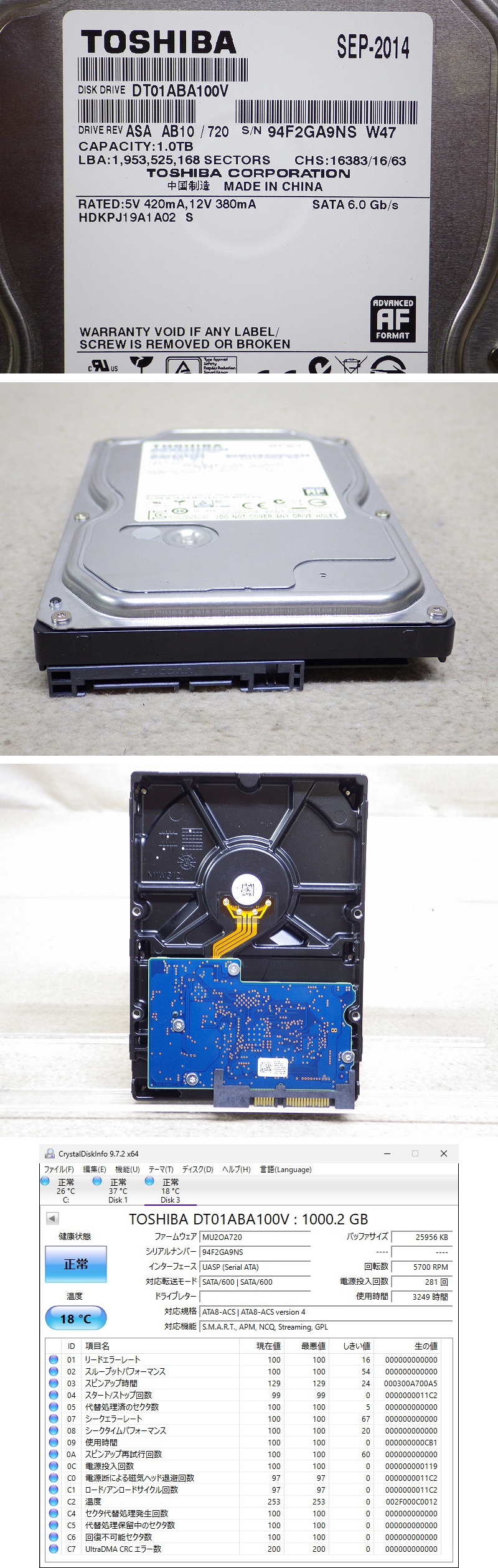 | 商品名 | Kネま2516 東芝/TOSHIBA 3.5インチ SATA 内蔵HDD 1TB DT01ABA100V パソコン周辺機器 PCパーツ ハードディスク |