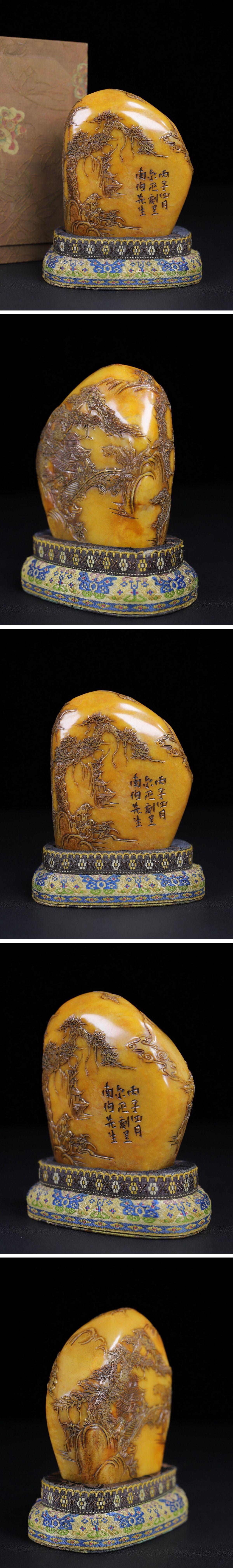 【清】関西某オークション購入 中国伝来 清時代物 寿山田黄石 松下高侍紋印章 当時物 時代コレクション8L1-JS4 收藏