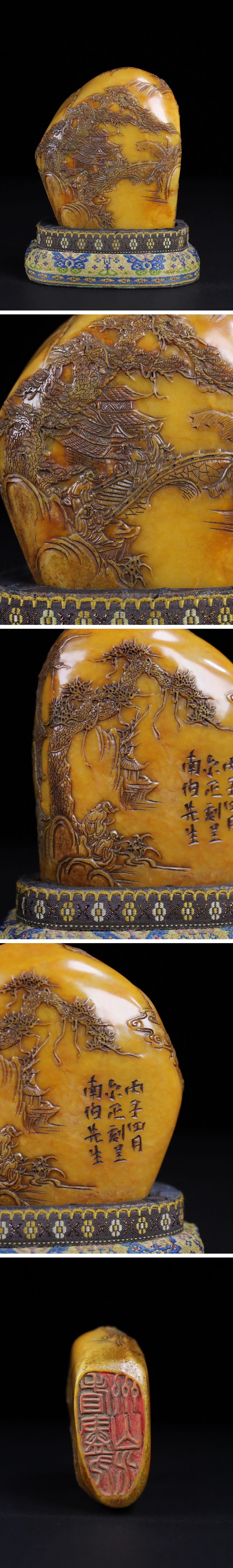 【清】関西某オークション購入 中国伝来 清時代物 寿山田黄石 松下高侍紋印章 当時物 時代コレクション8L1-JS4